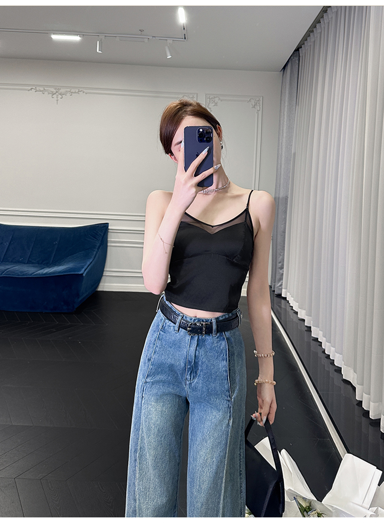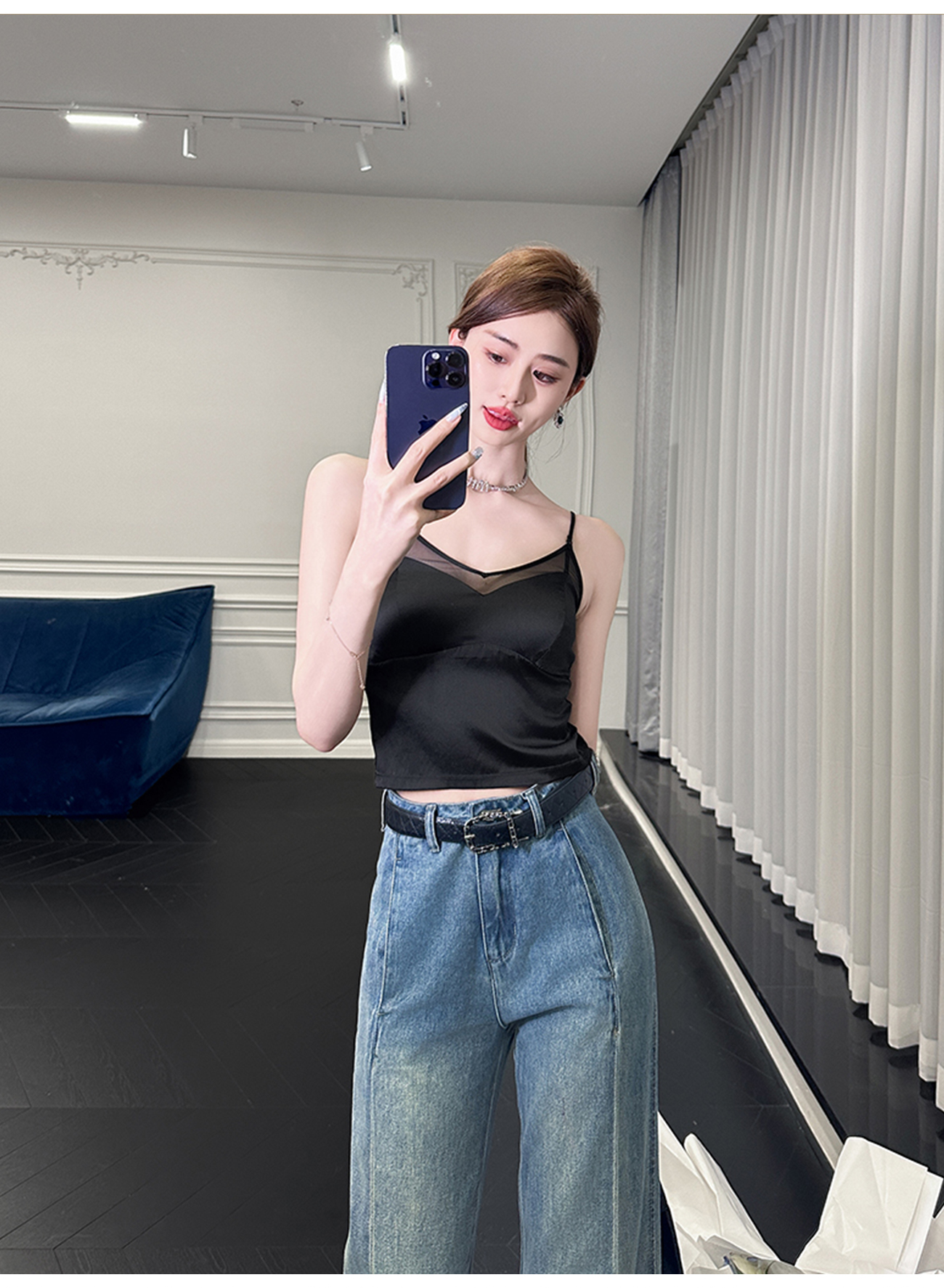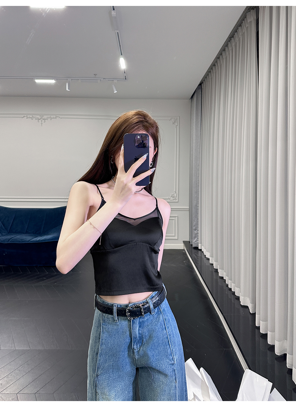 BeQueenStory【墨色生香】16姆米弹力真丝缎自带胸垫性感网纱吊带