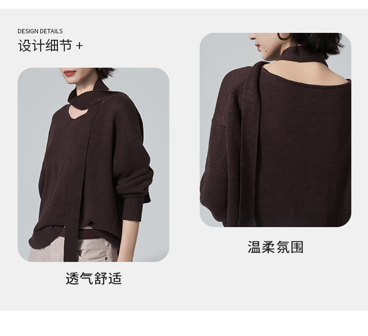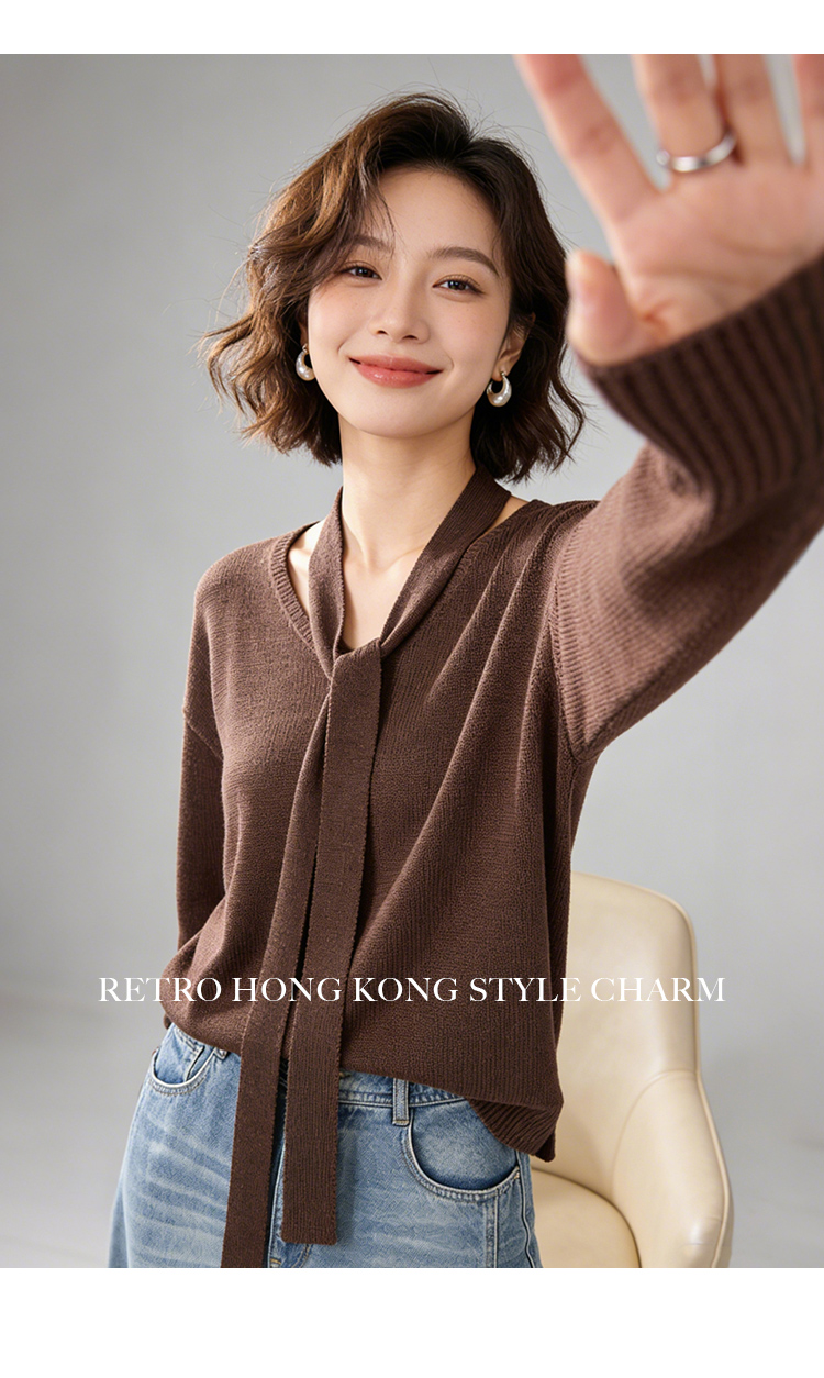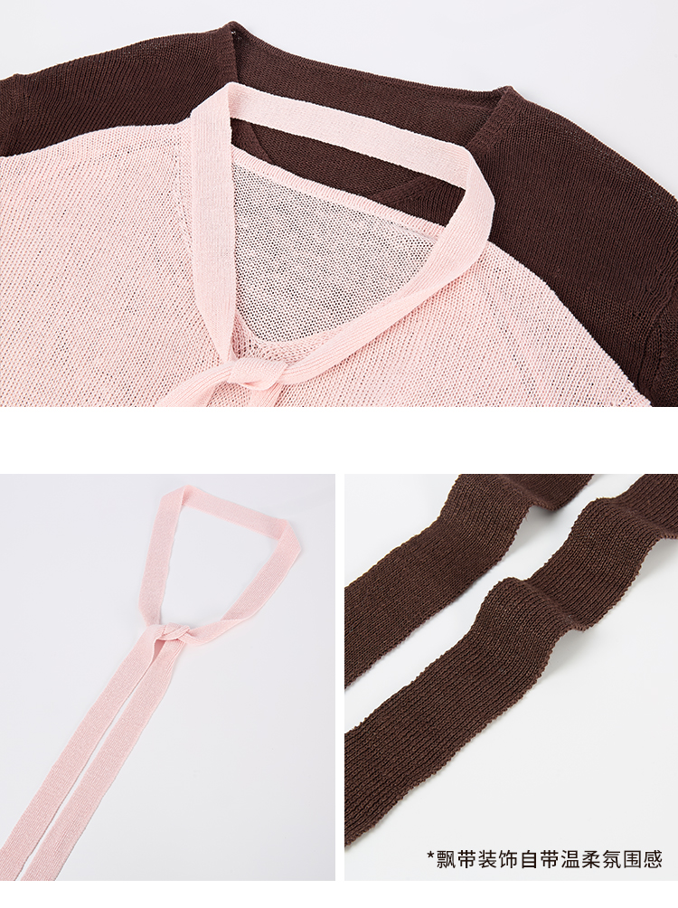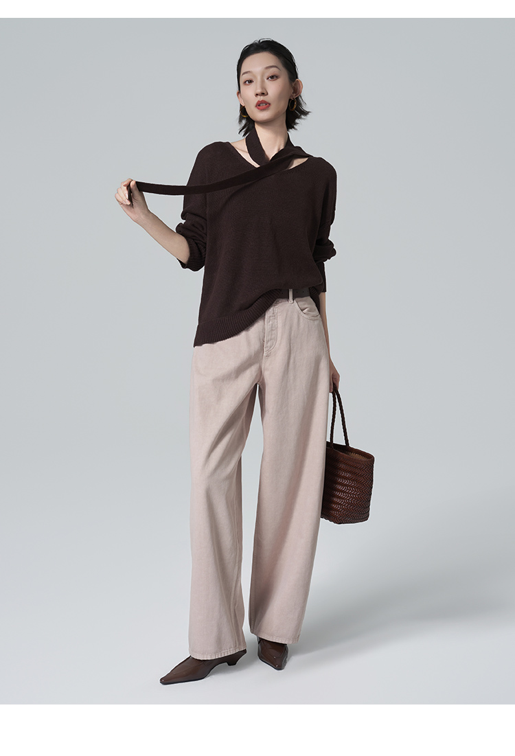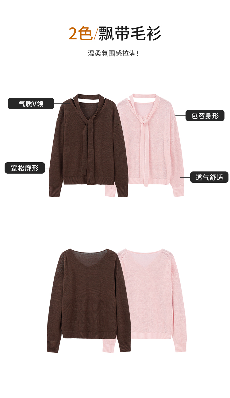 【商场同款】CNK6346 “ 飘带V领毛衫 ”天然亚麻材质 干爽舒适 宽松版型舒适自在