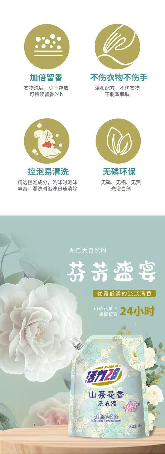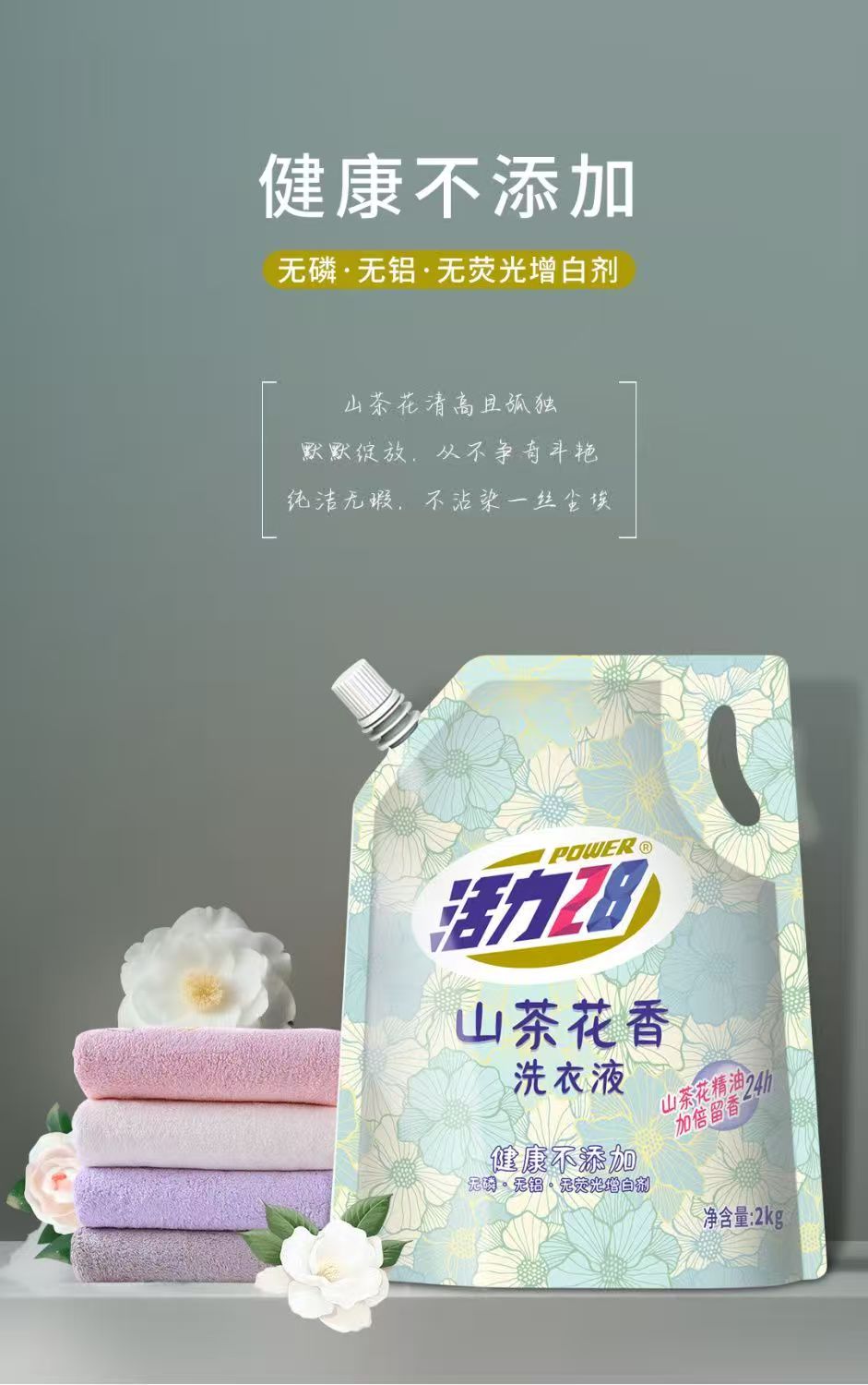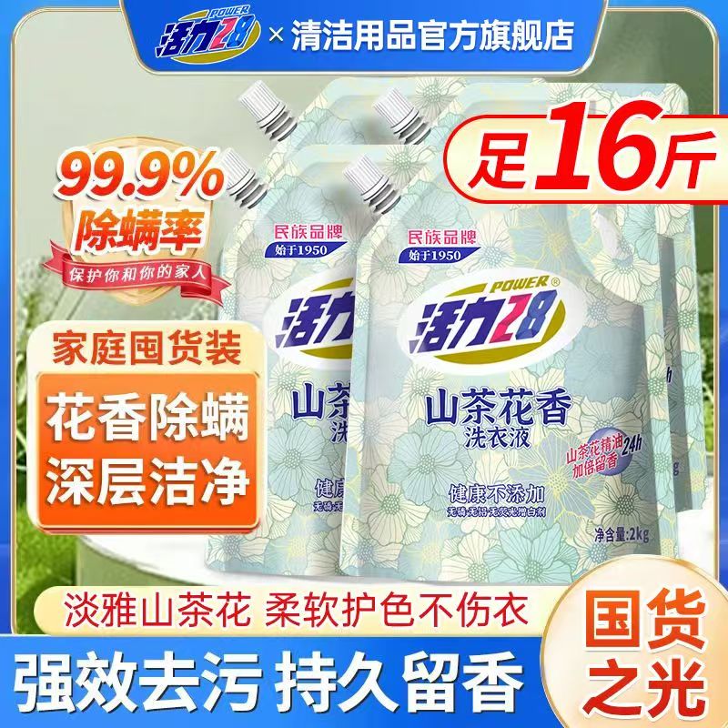 活力28山茶花洗衣液2kg持久留香深层清洁除菌除螨实惠装