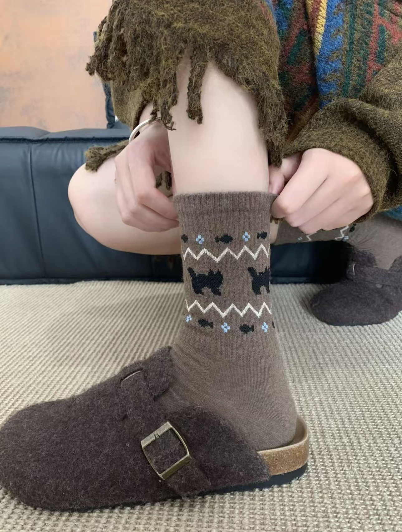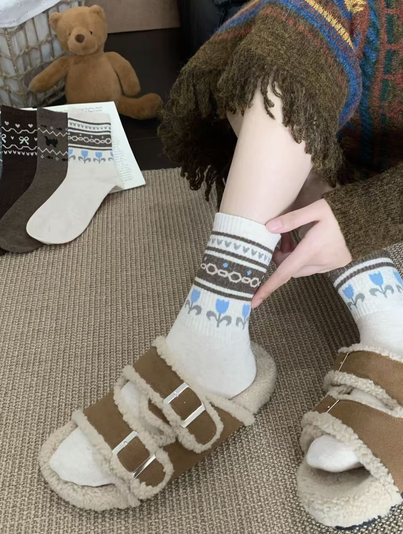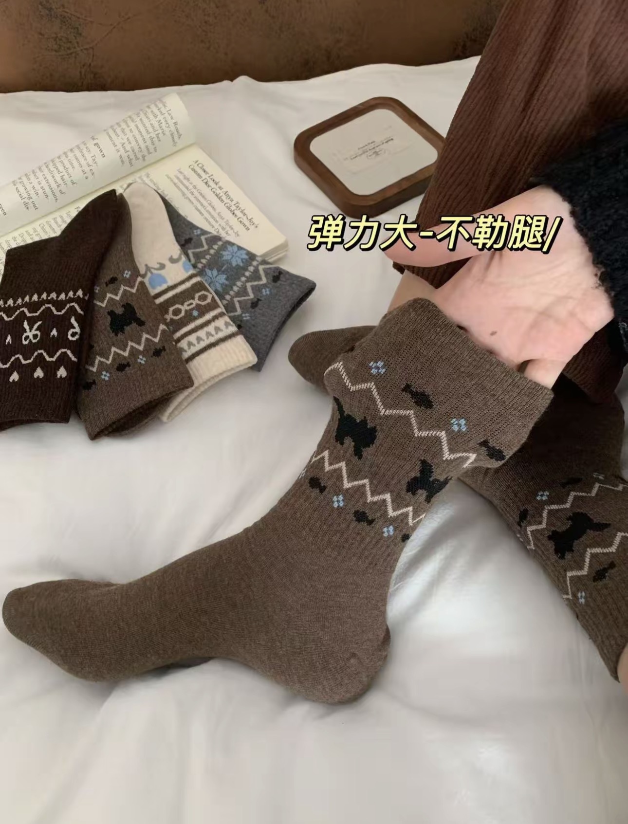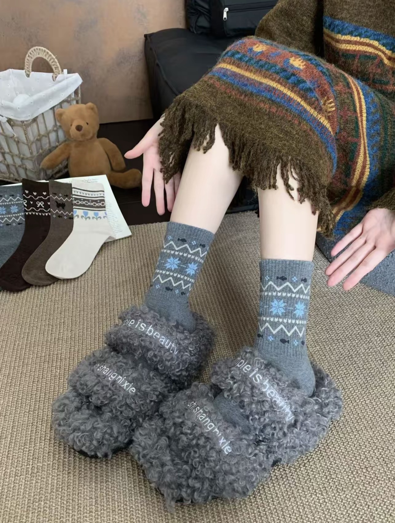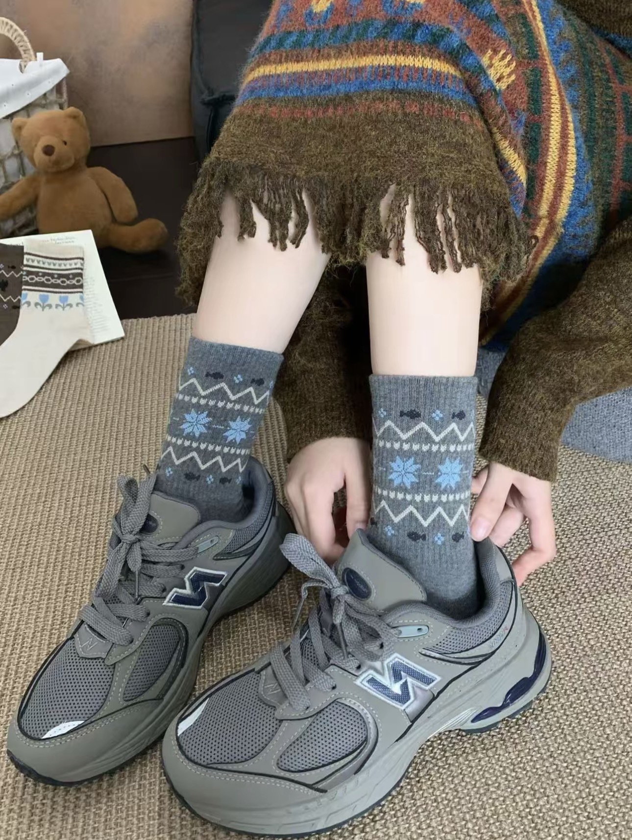 清仓【13.9抢4双复古民族风费尔岛袜】168针加厚保暖袜子 弹力足不勒脚