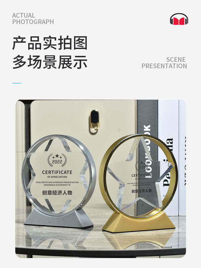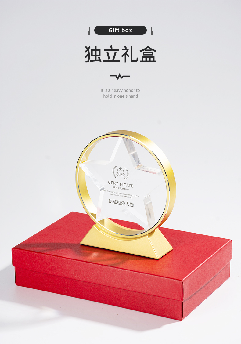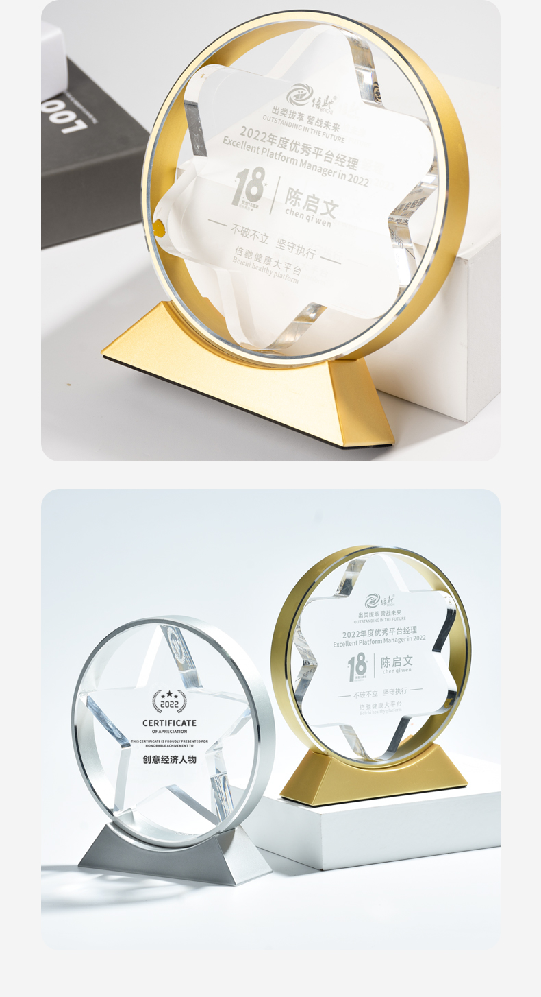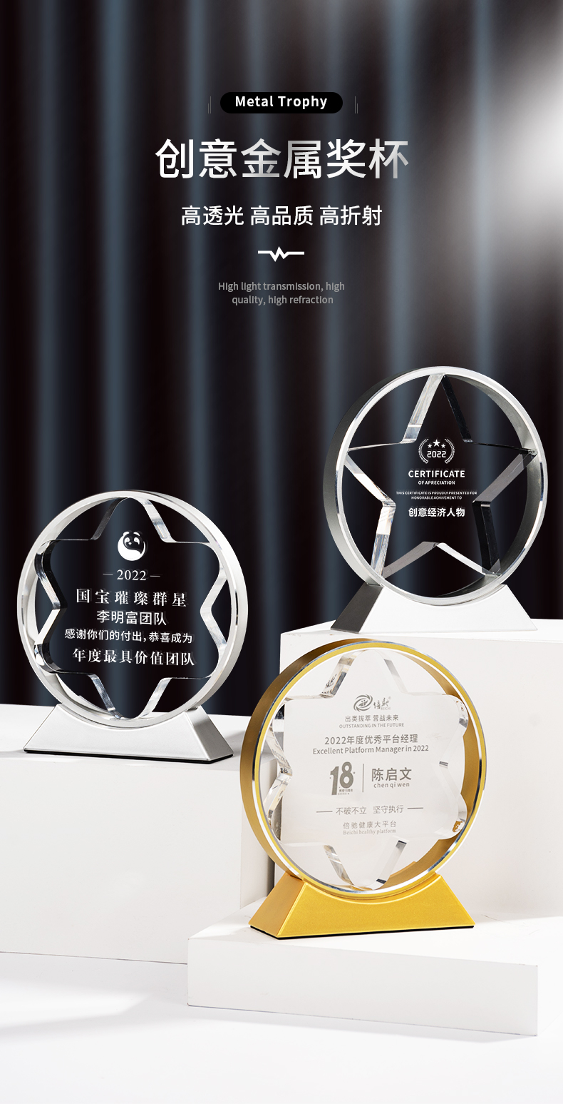新款金属奖杯定制定做亚克力水晶五角星创意优秀销售金银团体奖牌