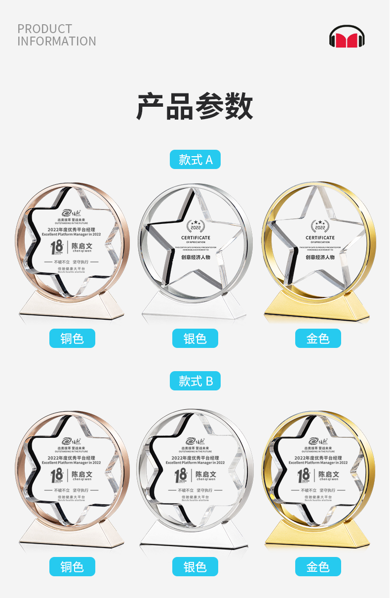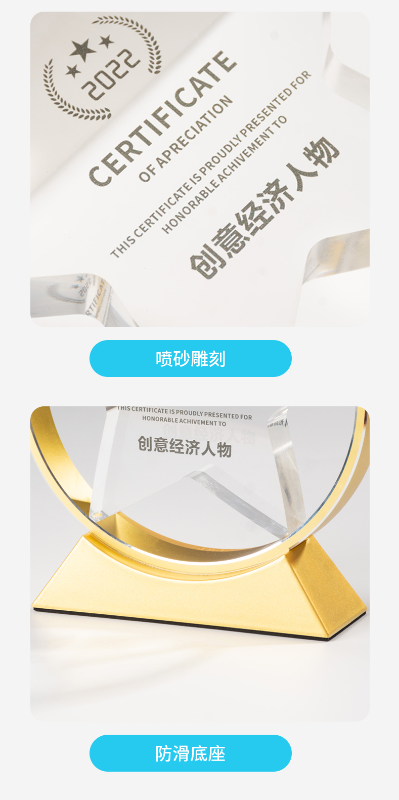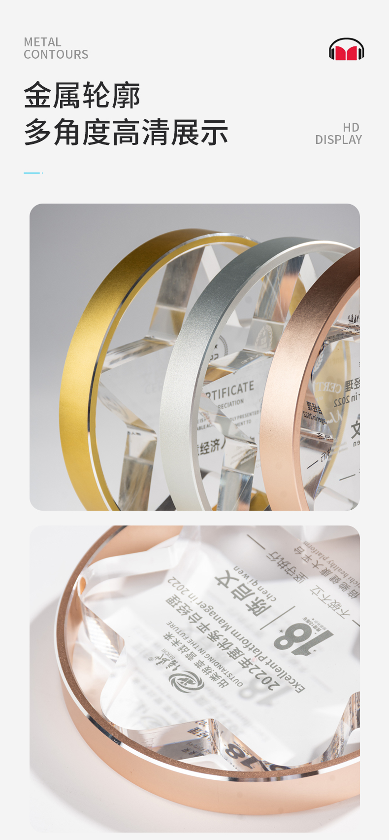 新款金属奖杯定制定做亚克力水晶五角星创意优秀销售金银团体奖牌