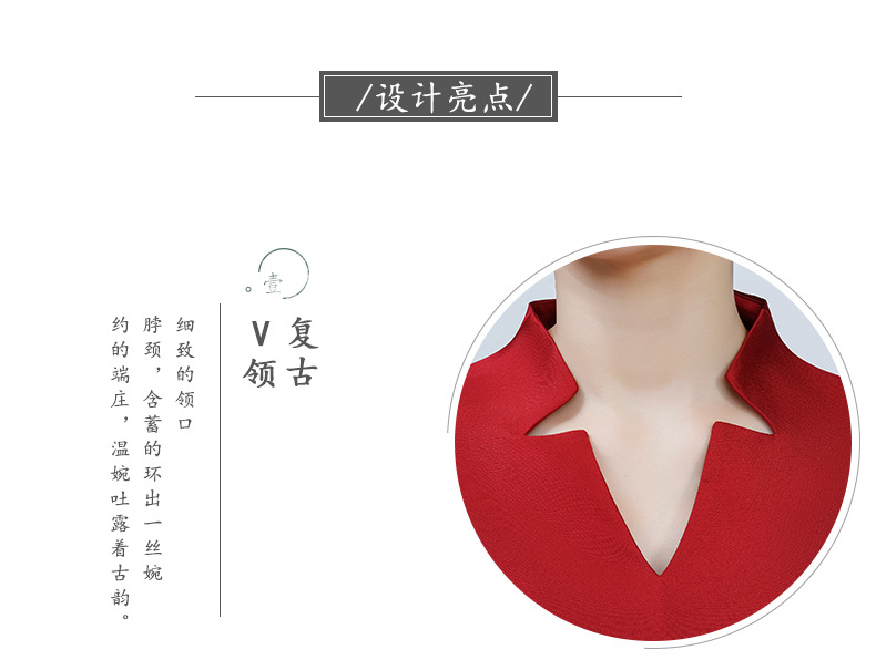 红色刺绣衬衫女设计感小众2022春季立领衬衣七分袖上衣 KIS1002
