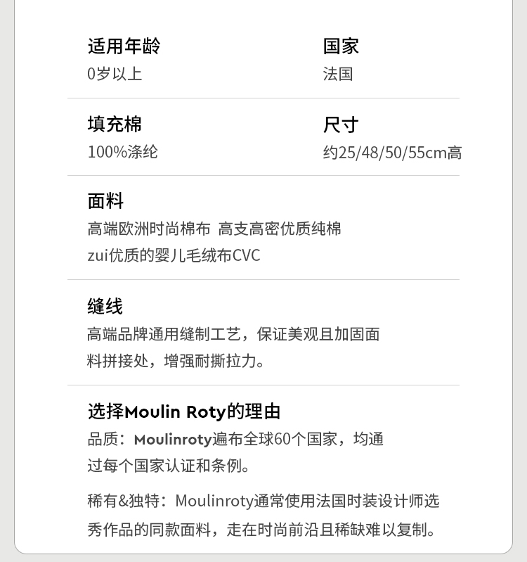 Moulin Roty 长腿豆豆玩偶 法式玩偶 适合全年龄 奇趣怪诞系列 法国品牌 716022
