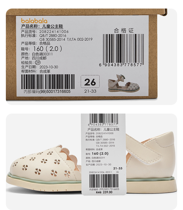 巴拉巴拉童鞋儿童公主鞋女童凉鞋夏季新款甜美文艺小皮鞋防滑