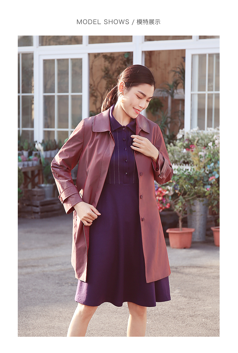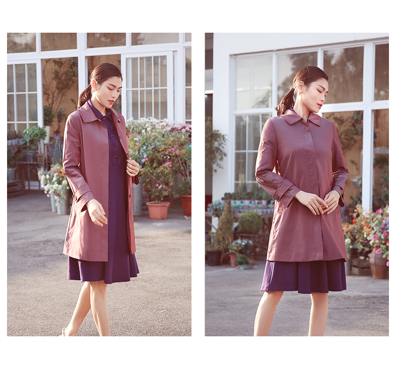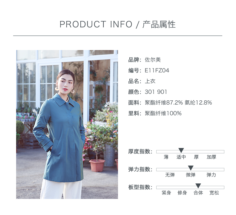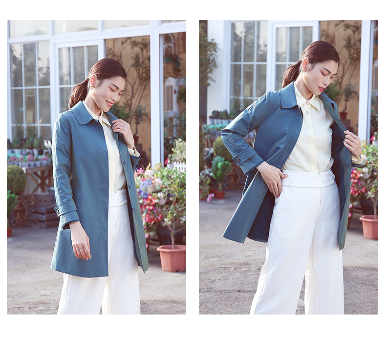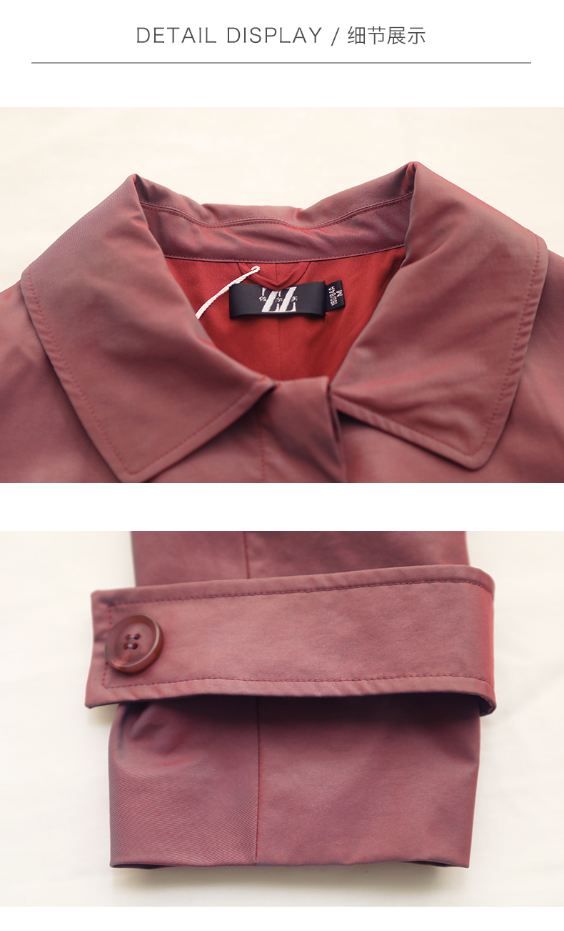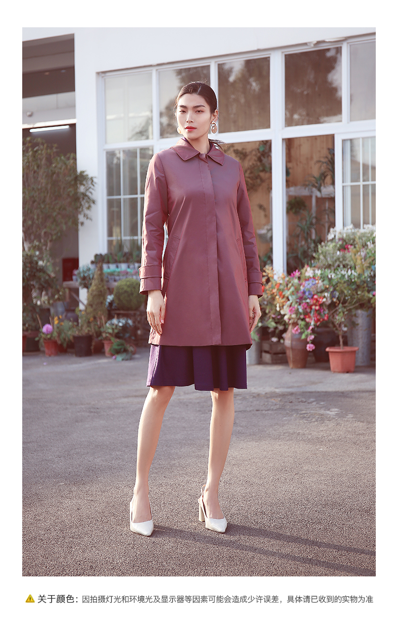佐尔美商场同款春季简约直筒渐变色修身弹力中长款风衣女E11FZ04