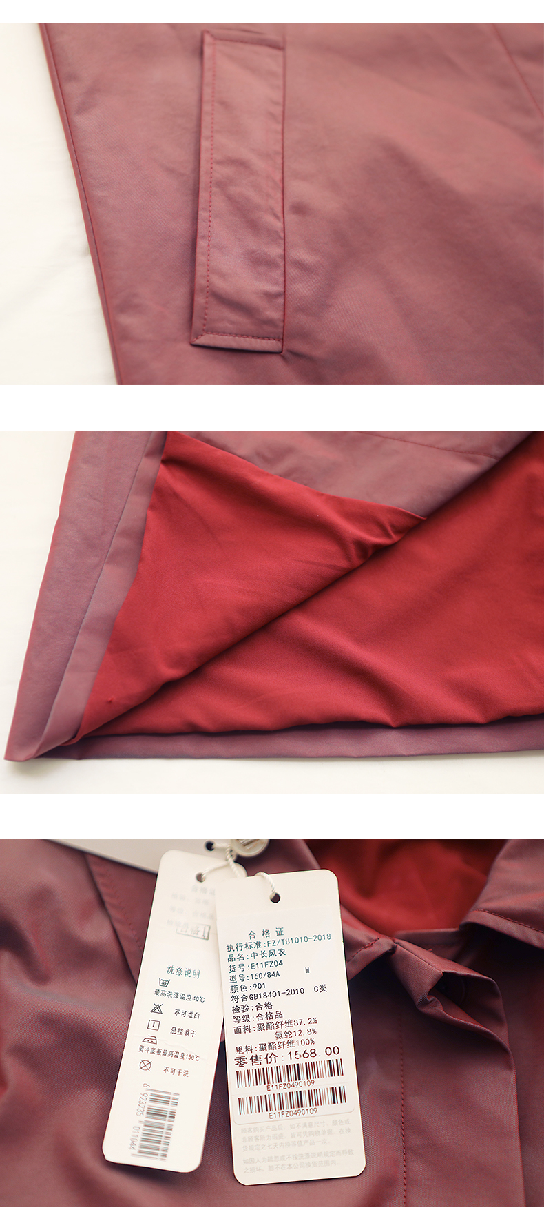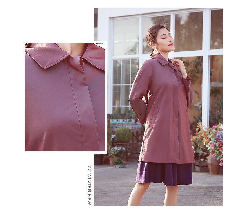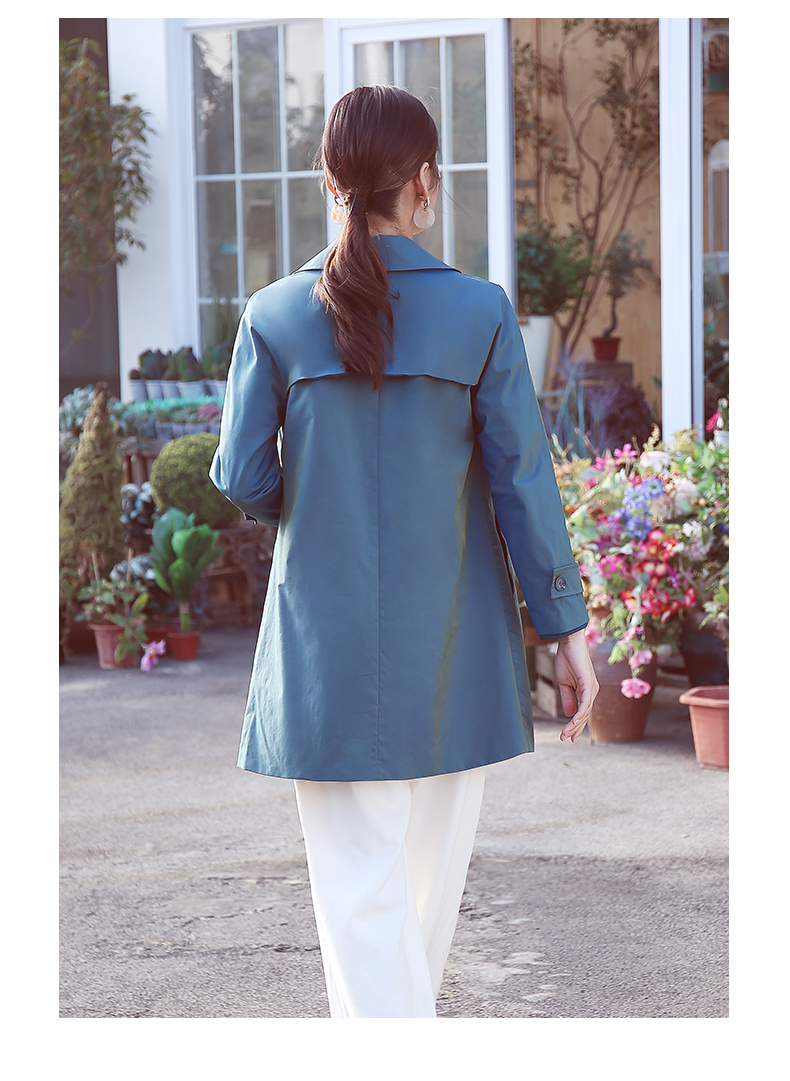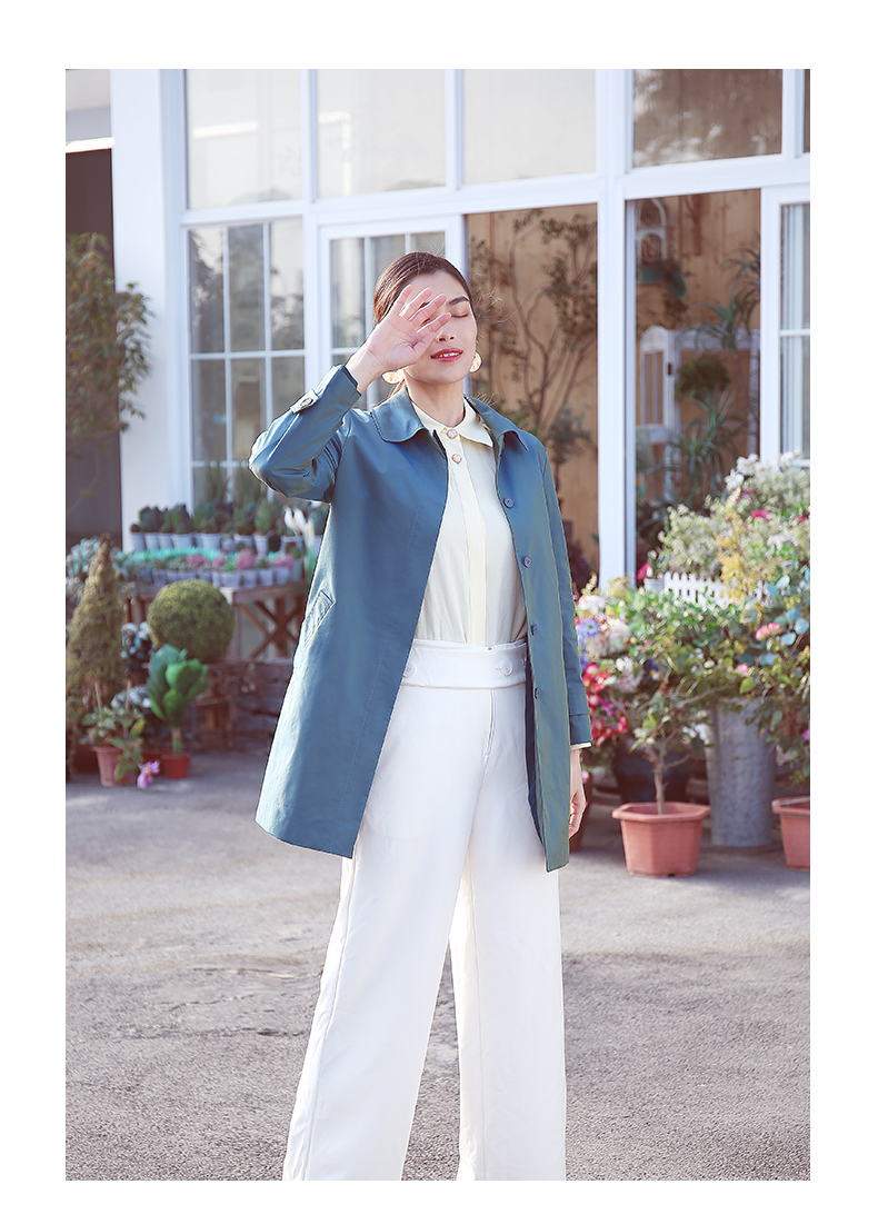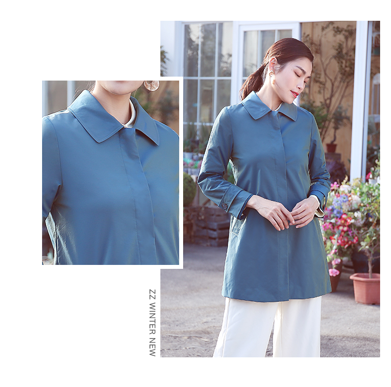 佐尔美商场同款春季简约直筒渐变色修身弹力中长款风衣女E11FZ04
