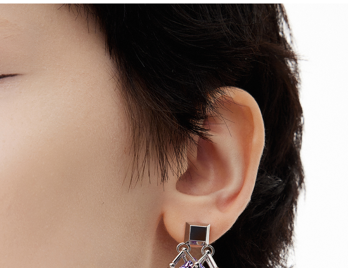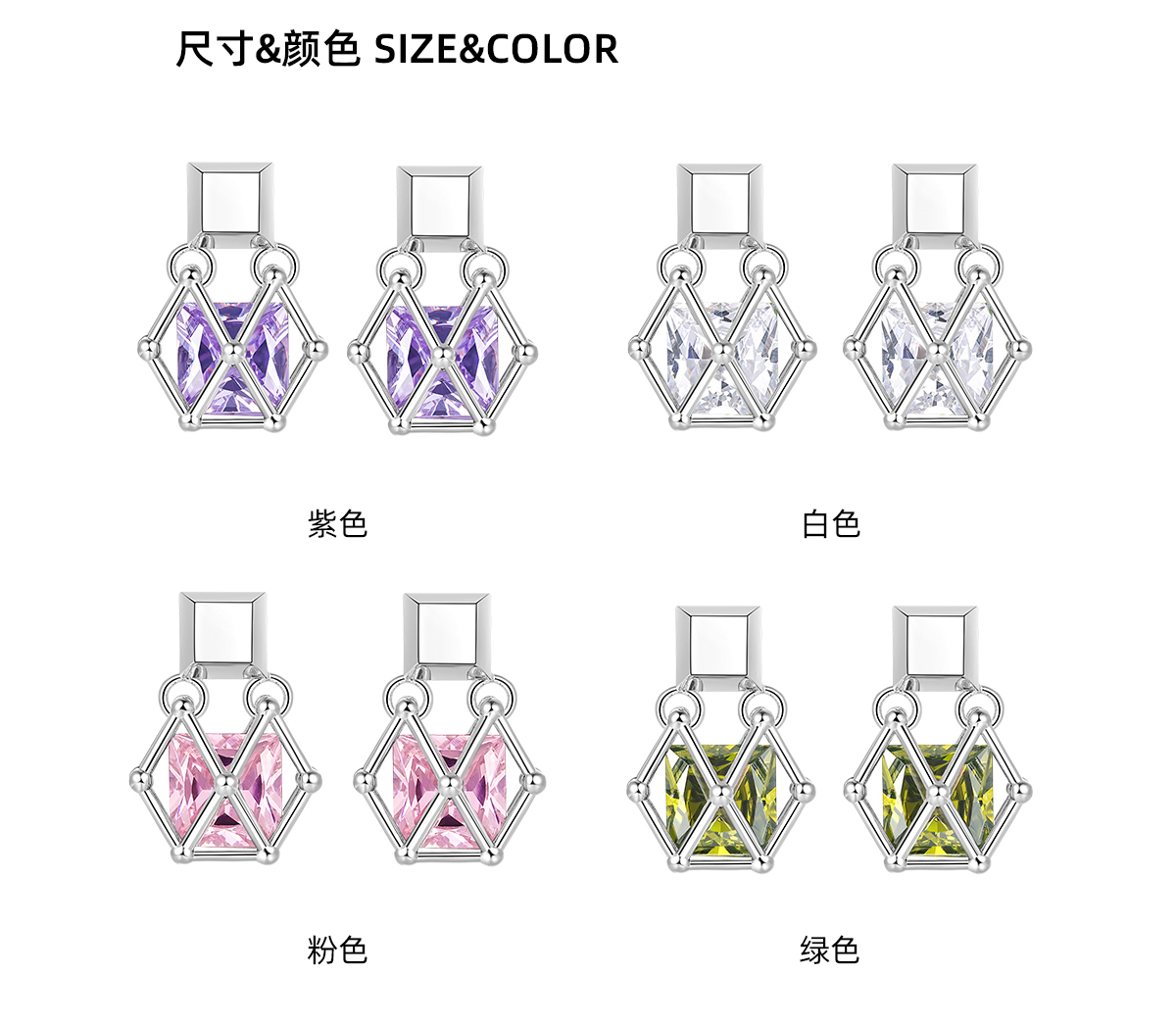 lost in echo原创设计师款时尚宝石猎人简约彩色锆石盒子耳环耳坠