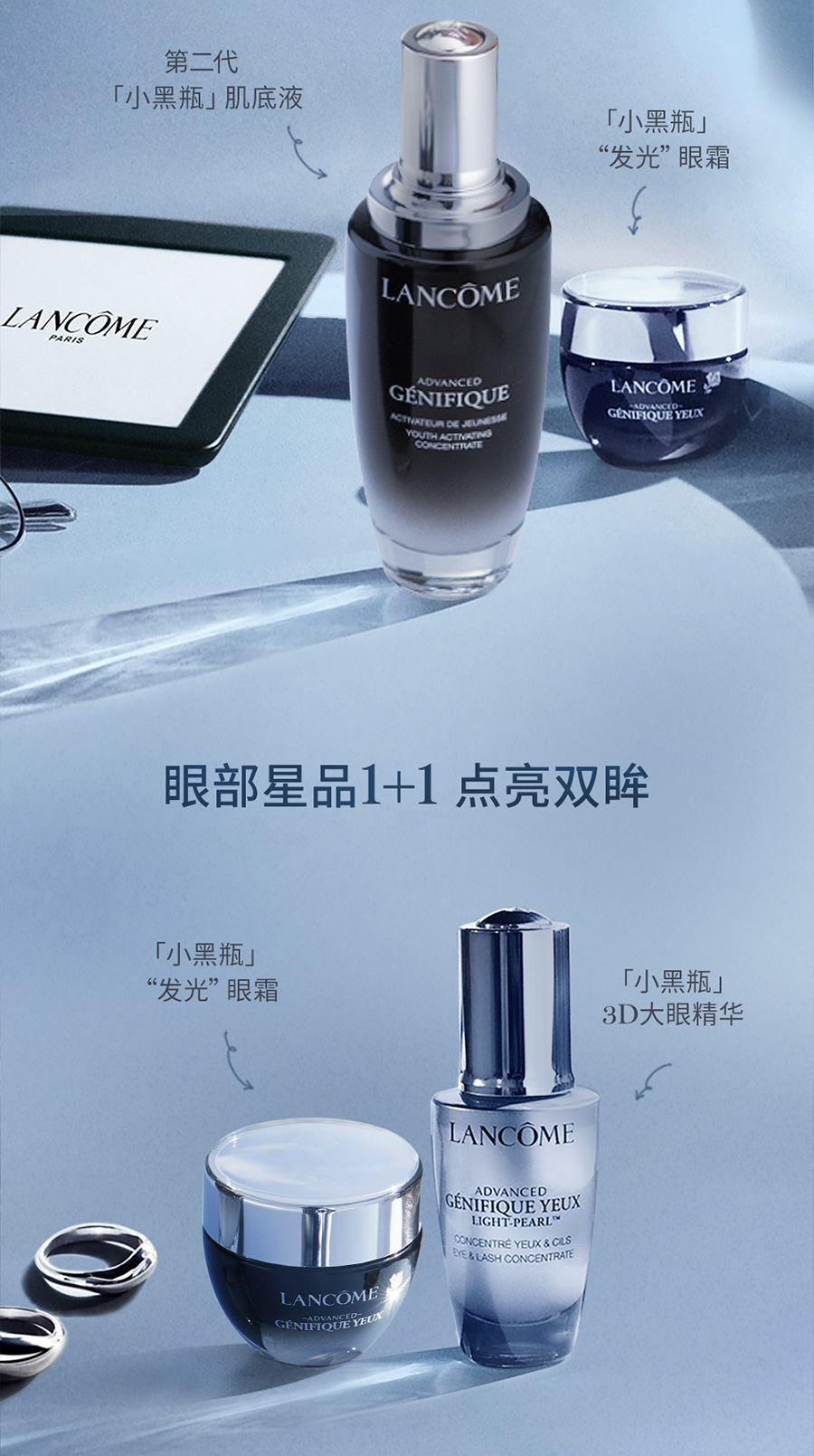 法国兰蔻小黑瓶精华肌底液眼霜 大眼精华 兰蔻小黑瓶眼霜套装15ml*2