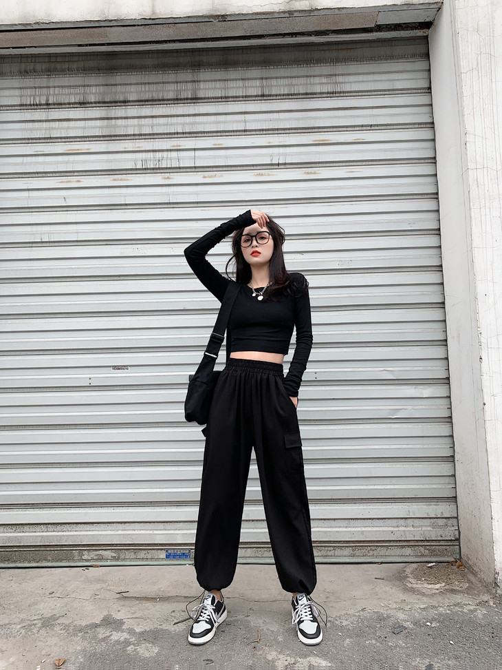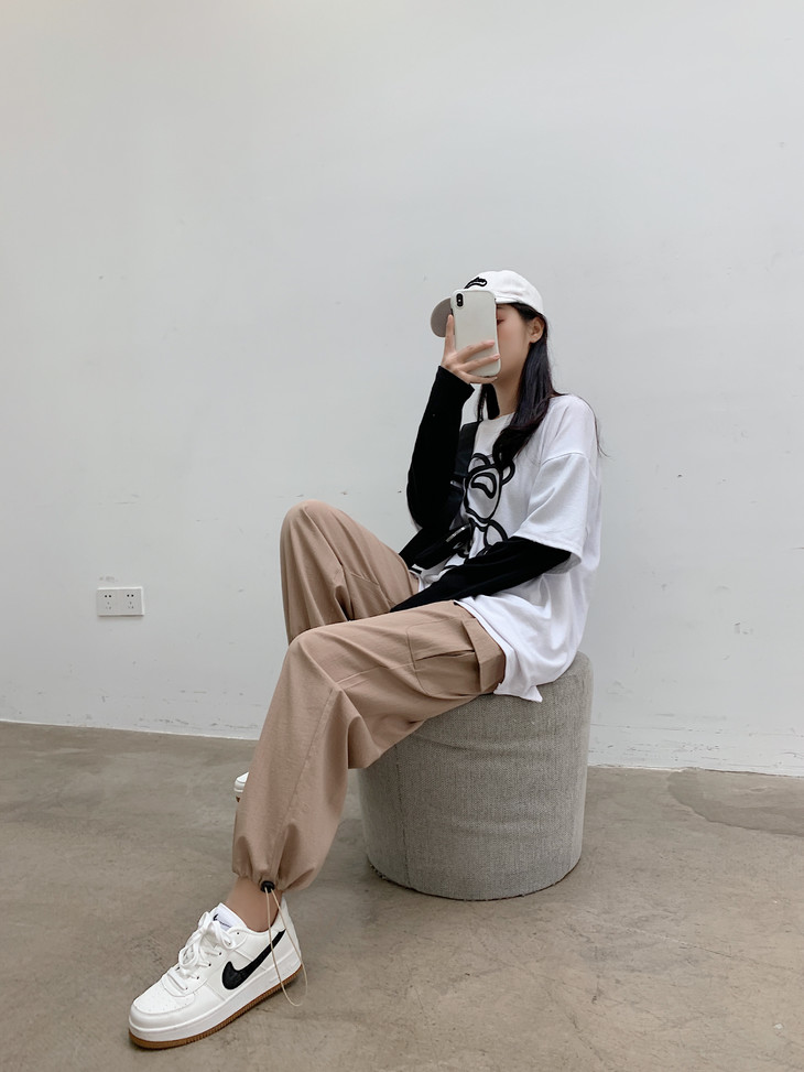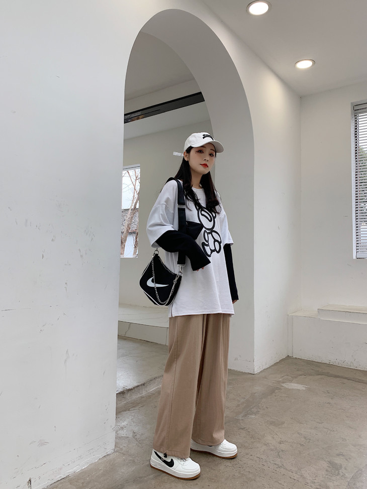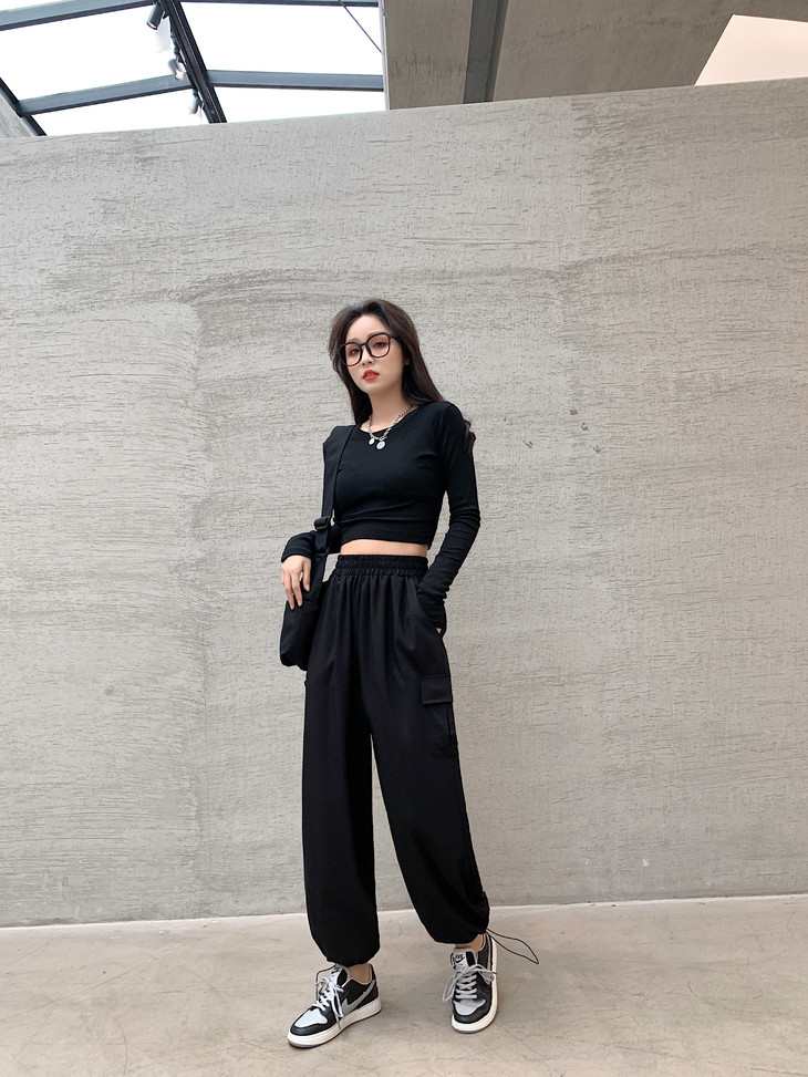 大腿粗的女生可要偷偷乐了,宽松性的裤腿可以完美隐藏小粗腿,修身的上衣秀出小蛮腰!