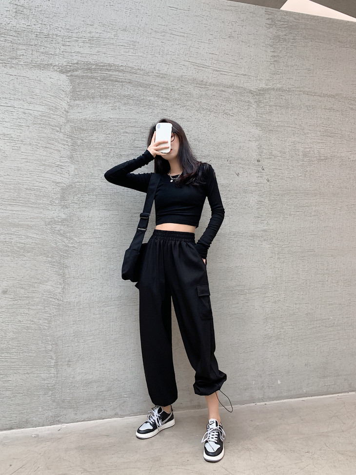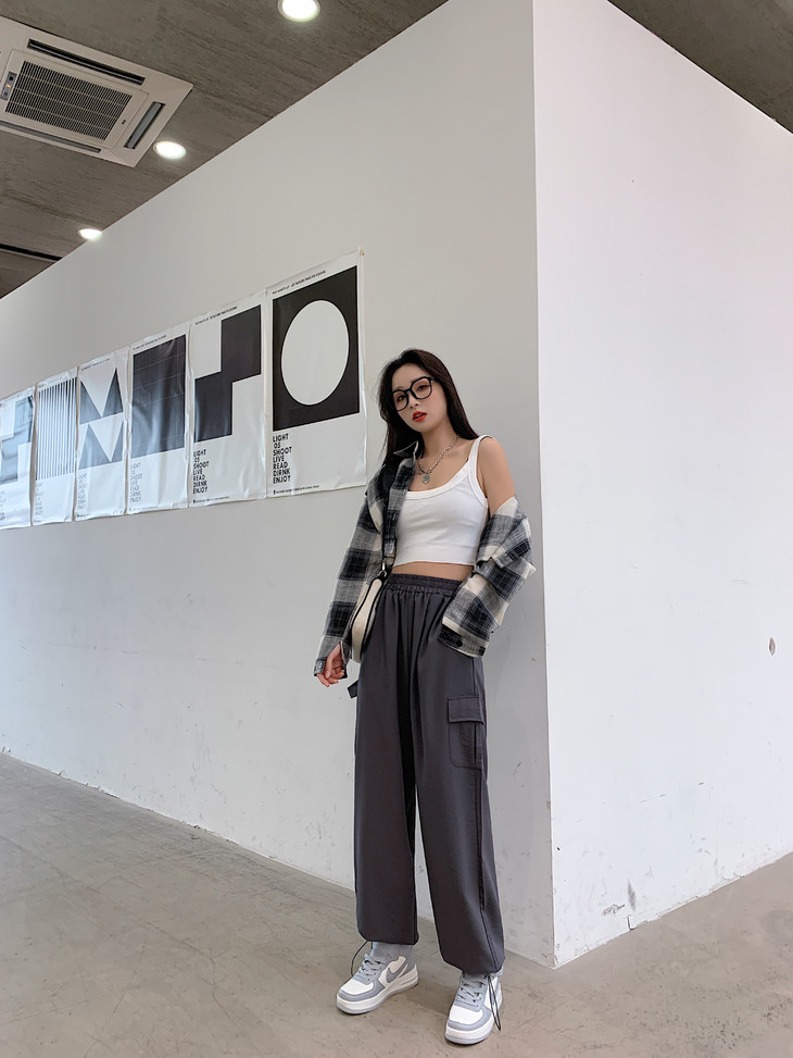 工装裤搭配短款针织衫、修身crop top或是吊带背心,又能搭出甜辣风。