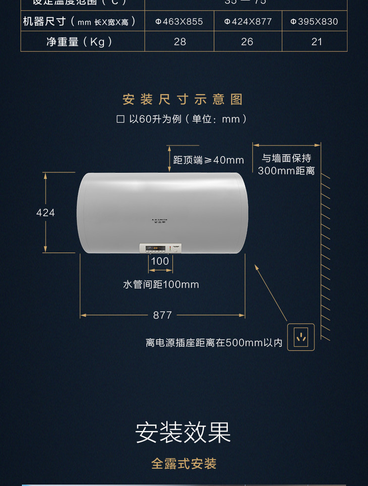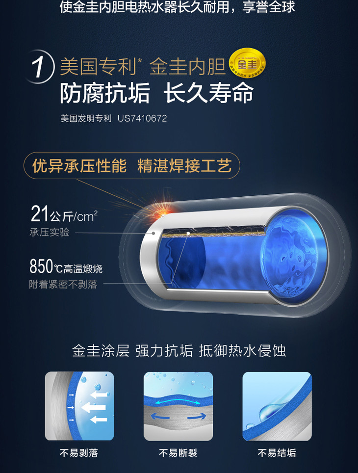 A.O.史密斯(A.O.Smith) 50升 金圭内胆 电热水器 F050