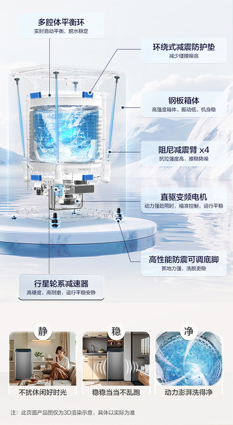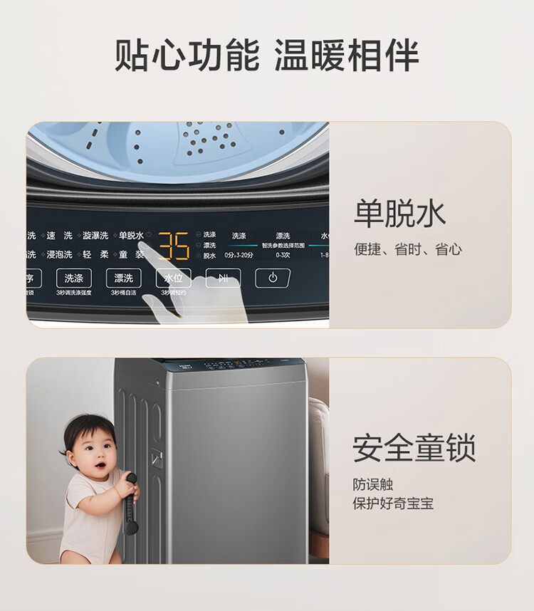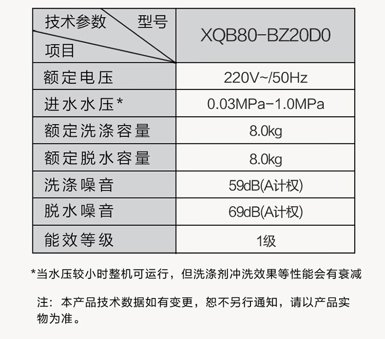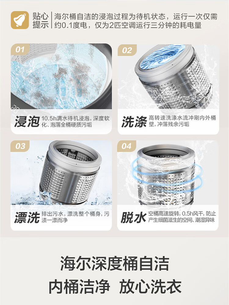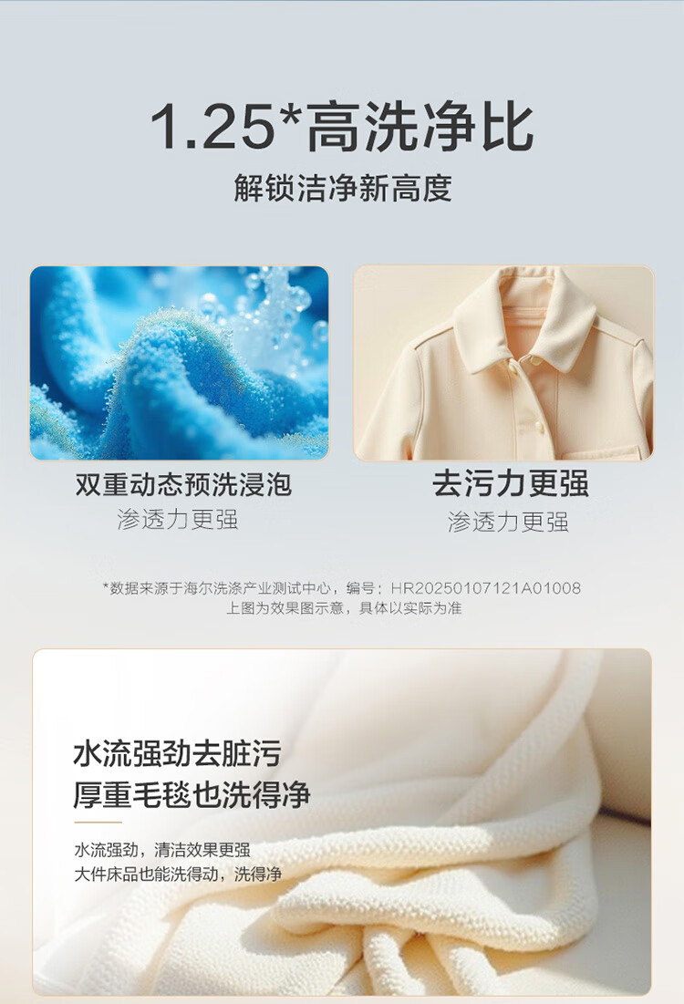 海尔8公斤全自动家用波轮洗衣机 直驱变频 一级能效 升级漩瀑洗 XQB80-BZ20D0 直驱变频+清新换风+一级能效