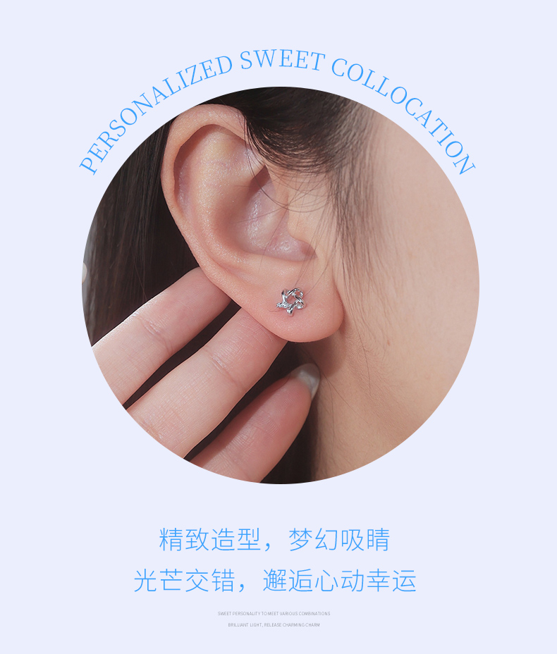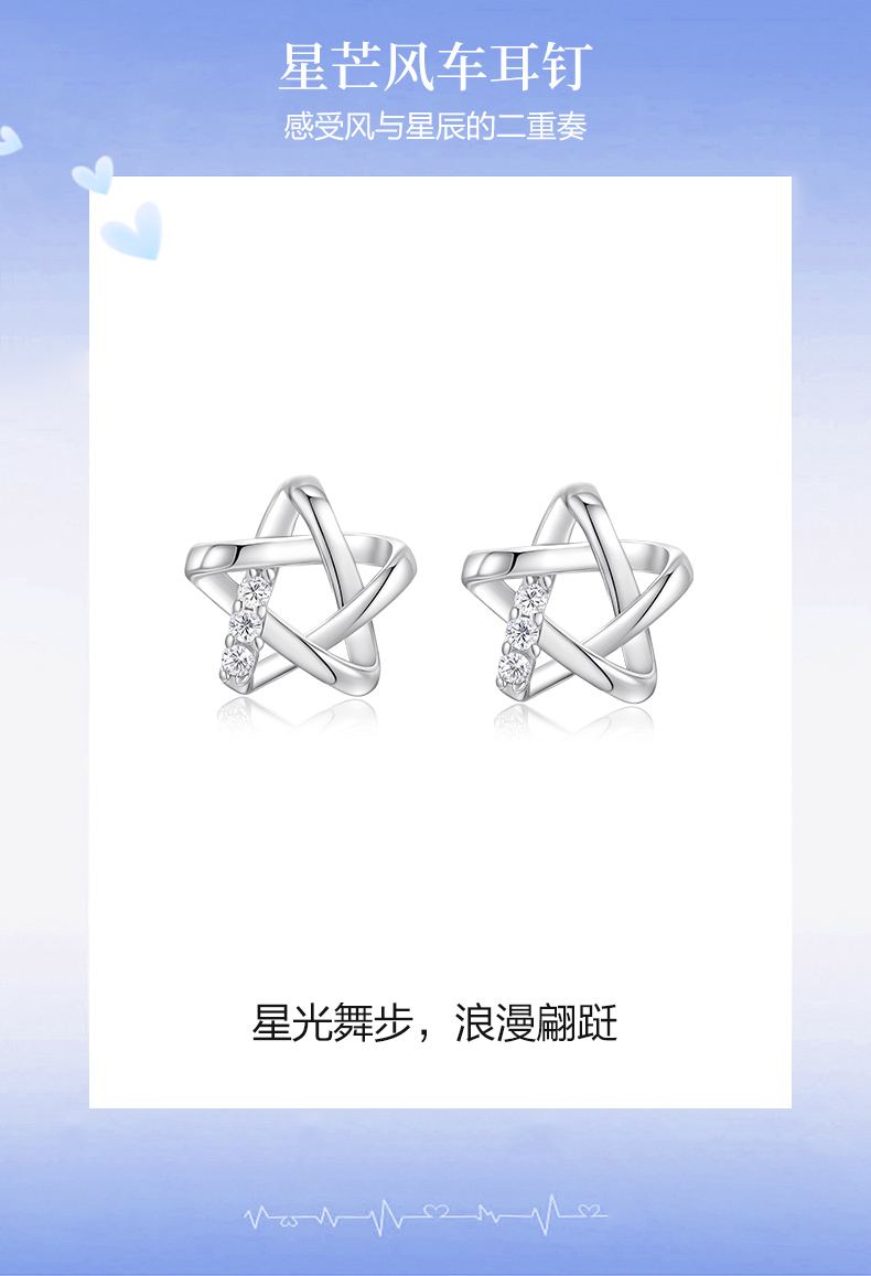 卡蒂罗KADER 星芒风车耳钉 闪耀光芒五芒星耳饰 镂空浪漫时尚简约小众轻奢设计百搭 不易撞款养耳洞 925银 耳钉 女款 银色