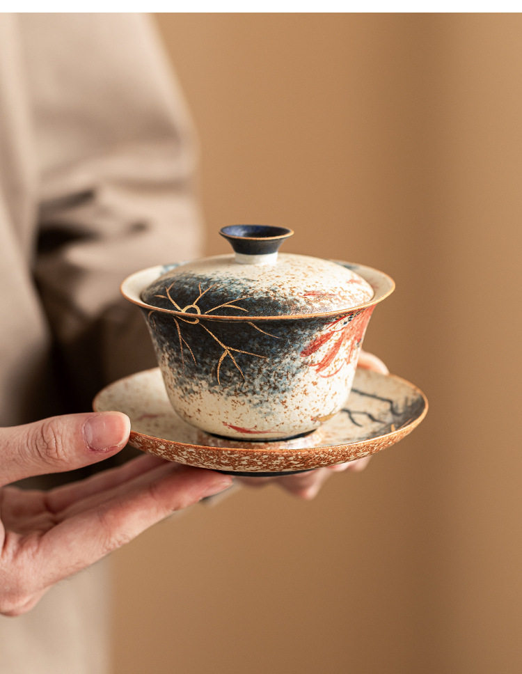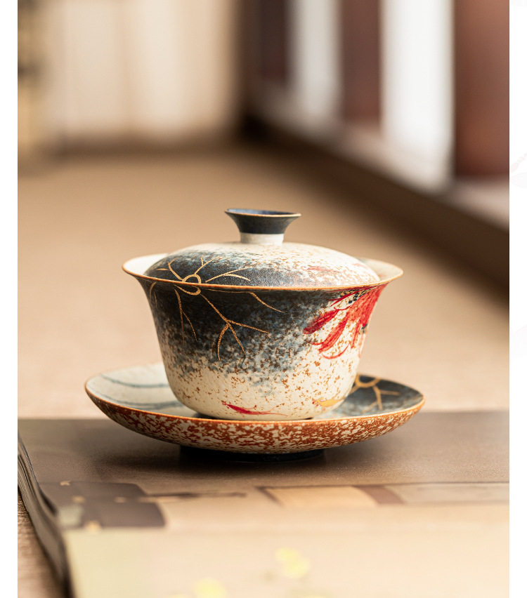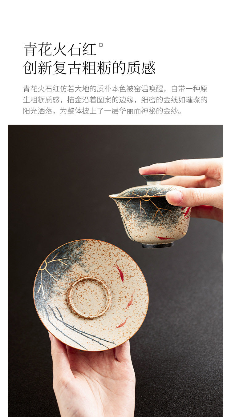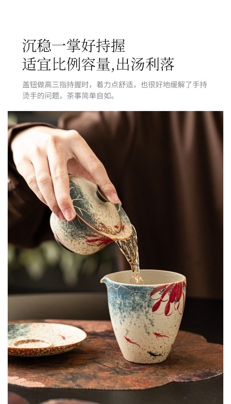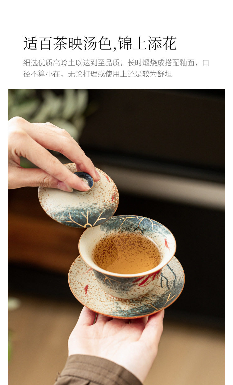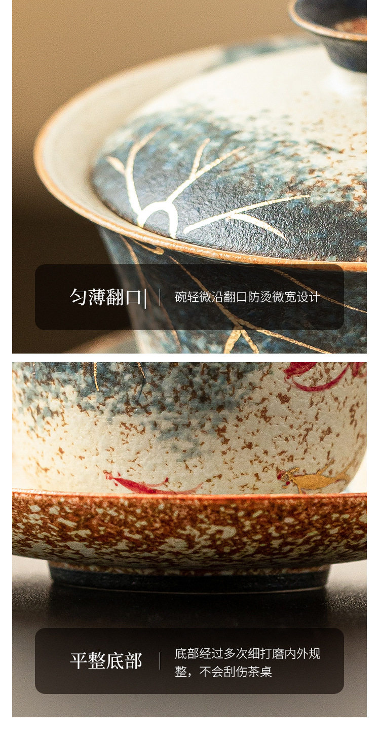 描金工厂青花茶碗锦鲤红火石泡三才盖碗荷韵功夫茶具手绘茶杯陶瓷