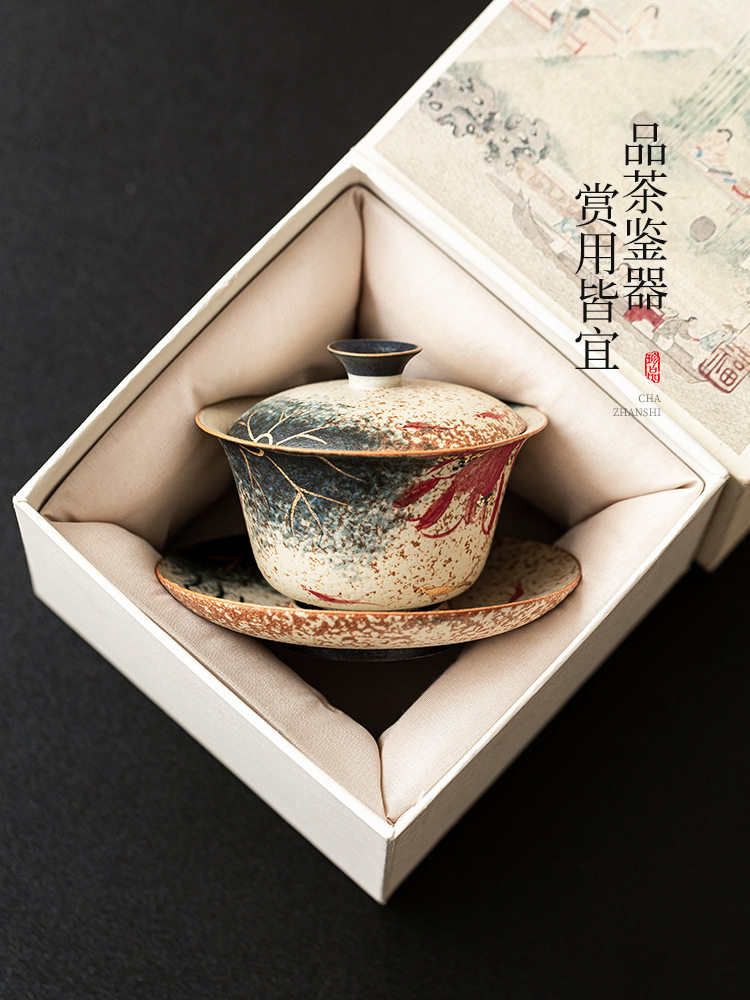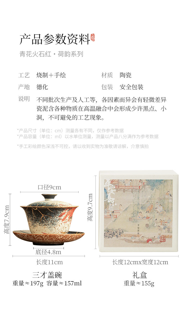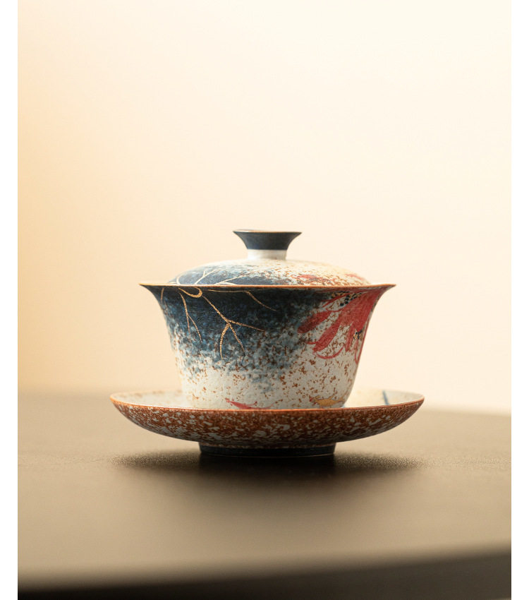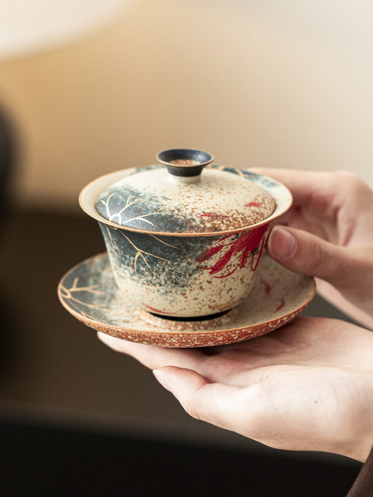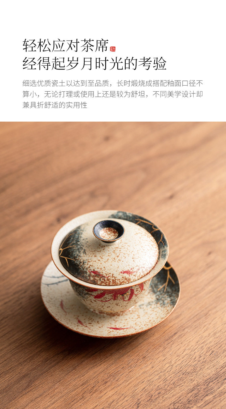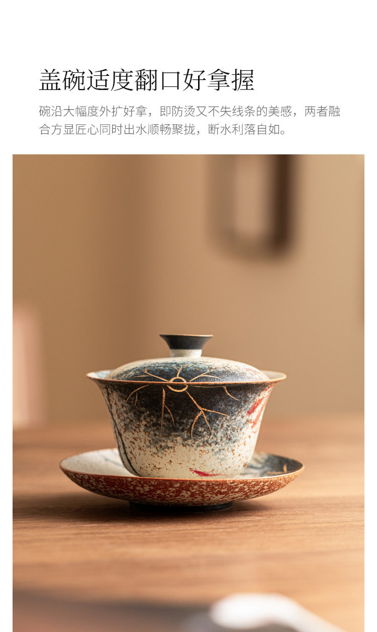 描金工厂青花茶碗锦鲤红火石泡三才盖碗荷韵功夫茶具手绘茶杯陶瓷