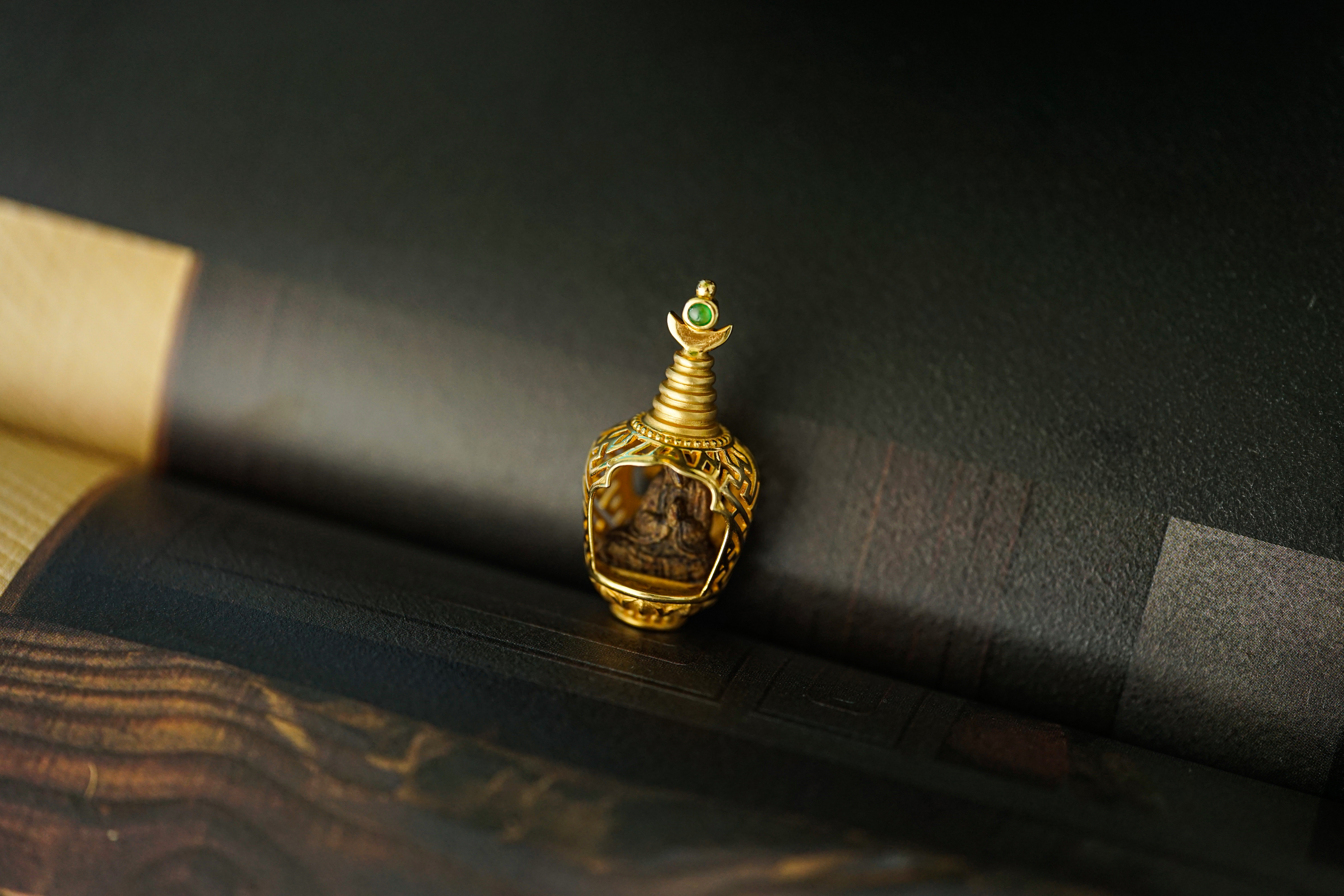 18K金沉香佛塔吊坠 特价