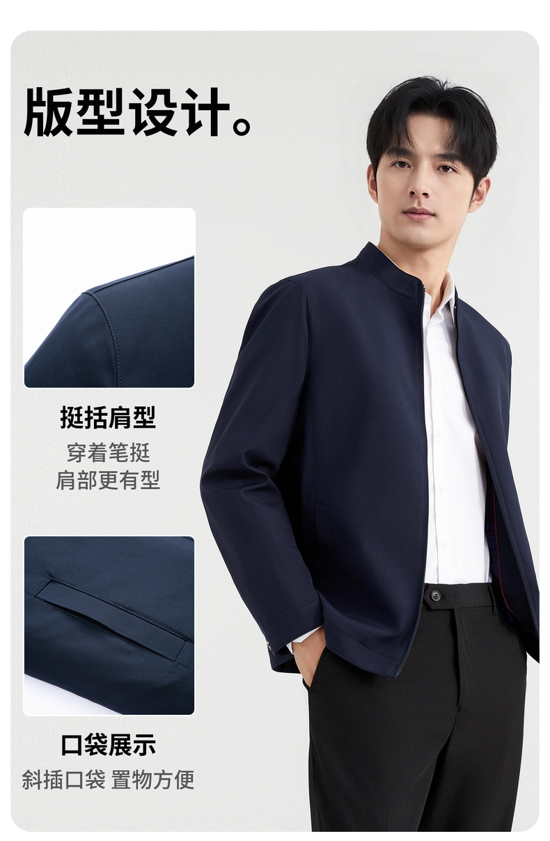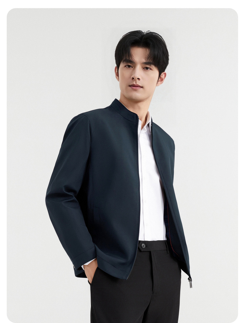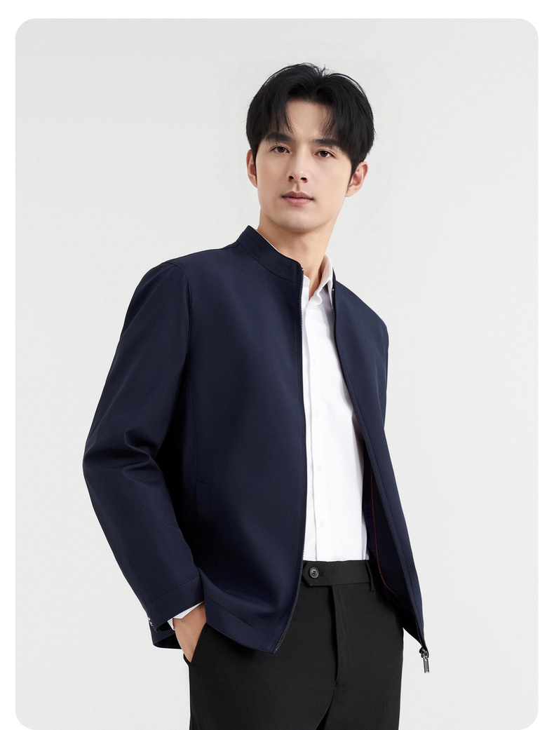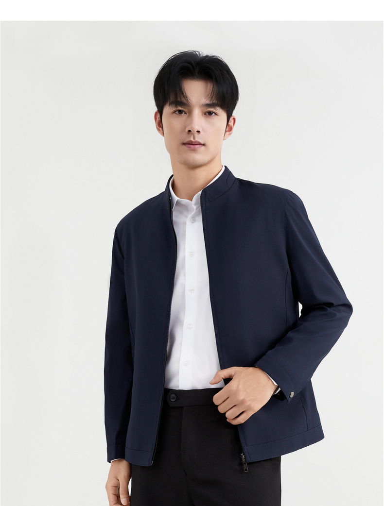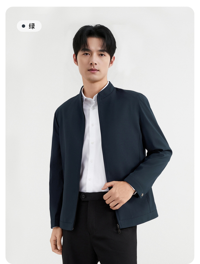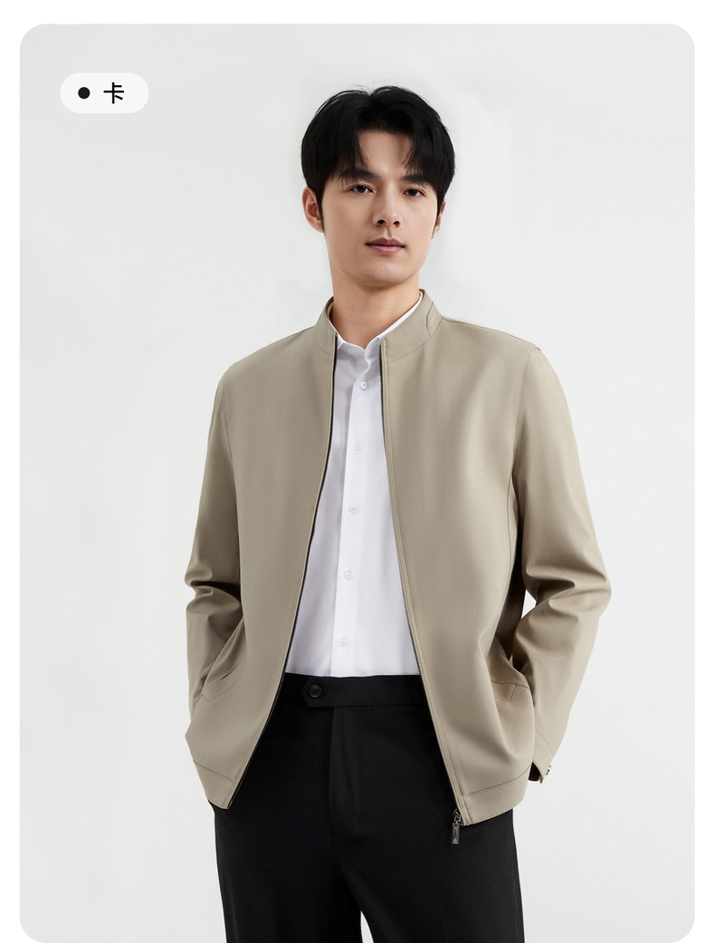 圣得西商务风夹克男2025春季新款行政休闲立领外套百搭纯色上衣