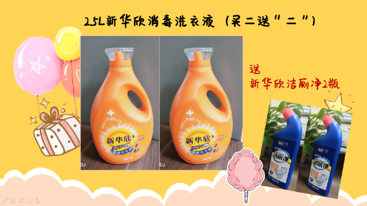 2.5L新华欣消毒洗衣液2壶,送新华欣洁厕净2瓶!