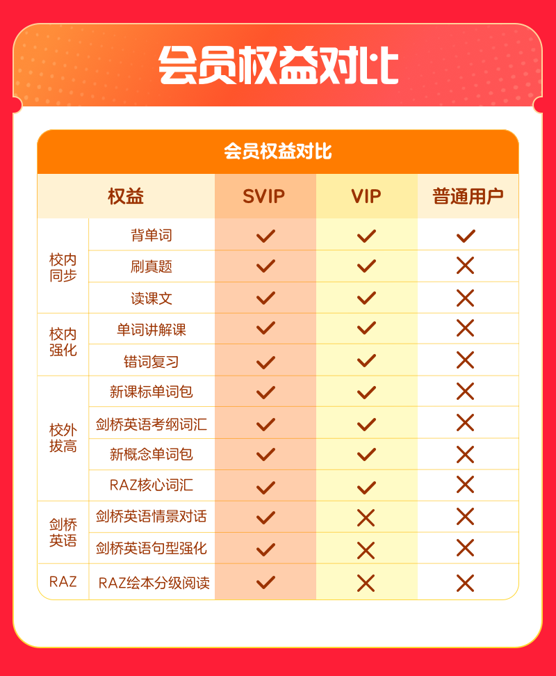 英语天天练SVIP,校内提分+校外拓展,一套课程告别额外补习班!