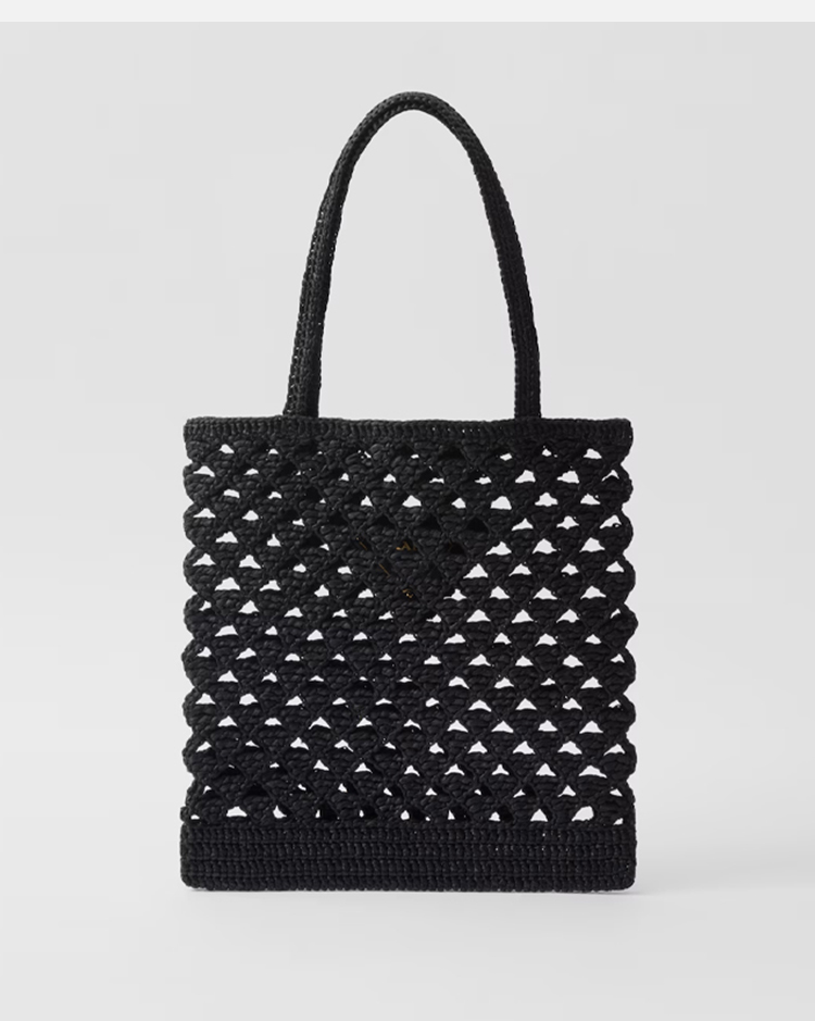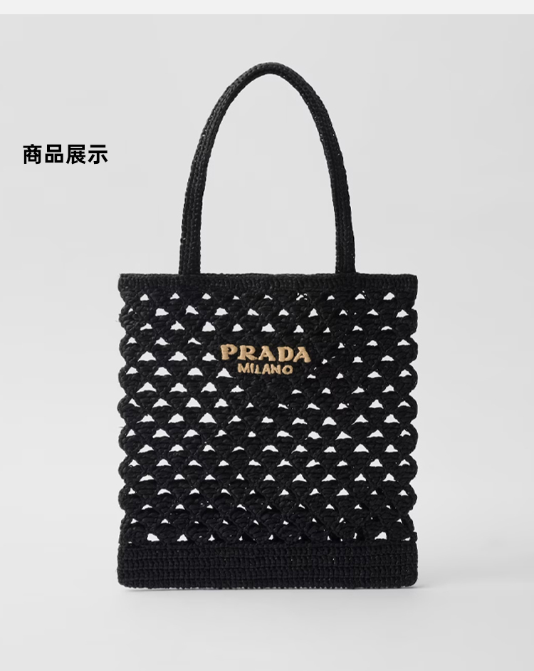 PRADA 普拉达 女士字母徽标钩针编织手提袋 黑色 1BG493 2M2T F0ES7 OOO