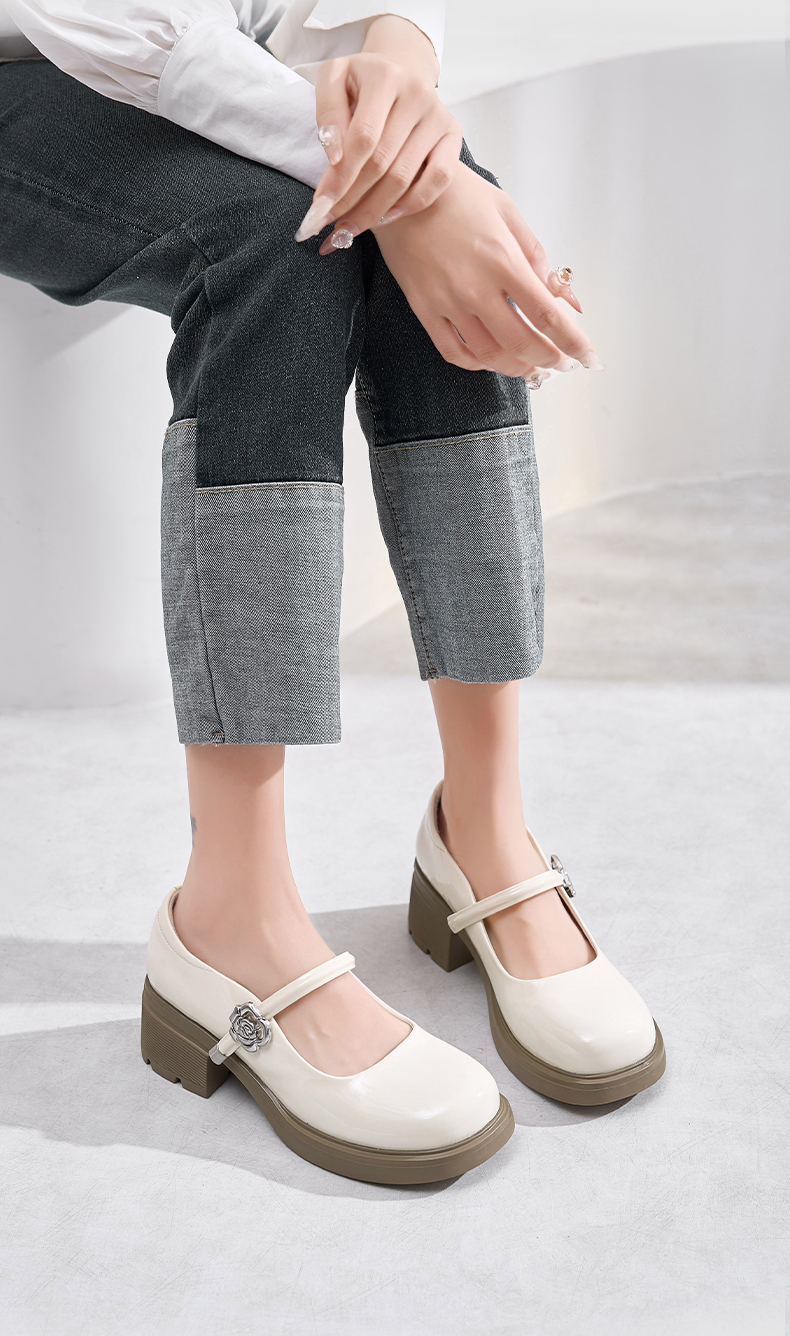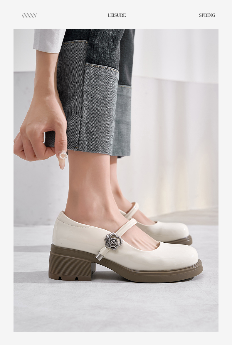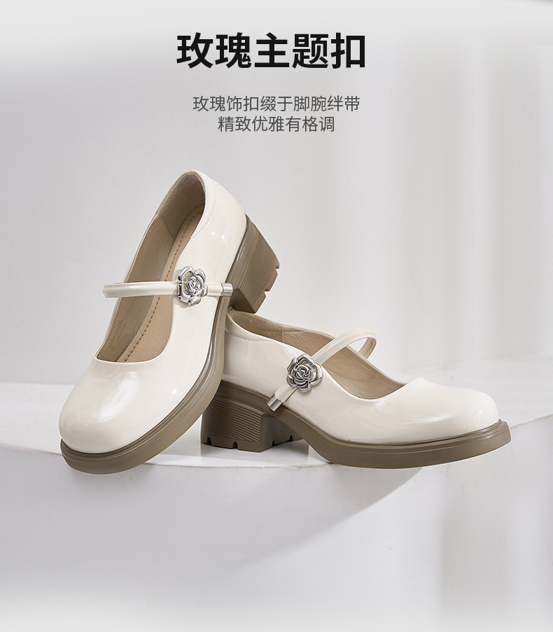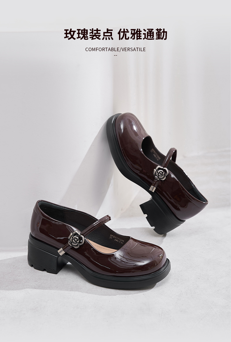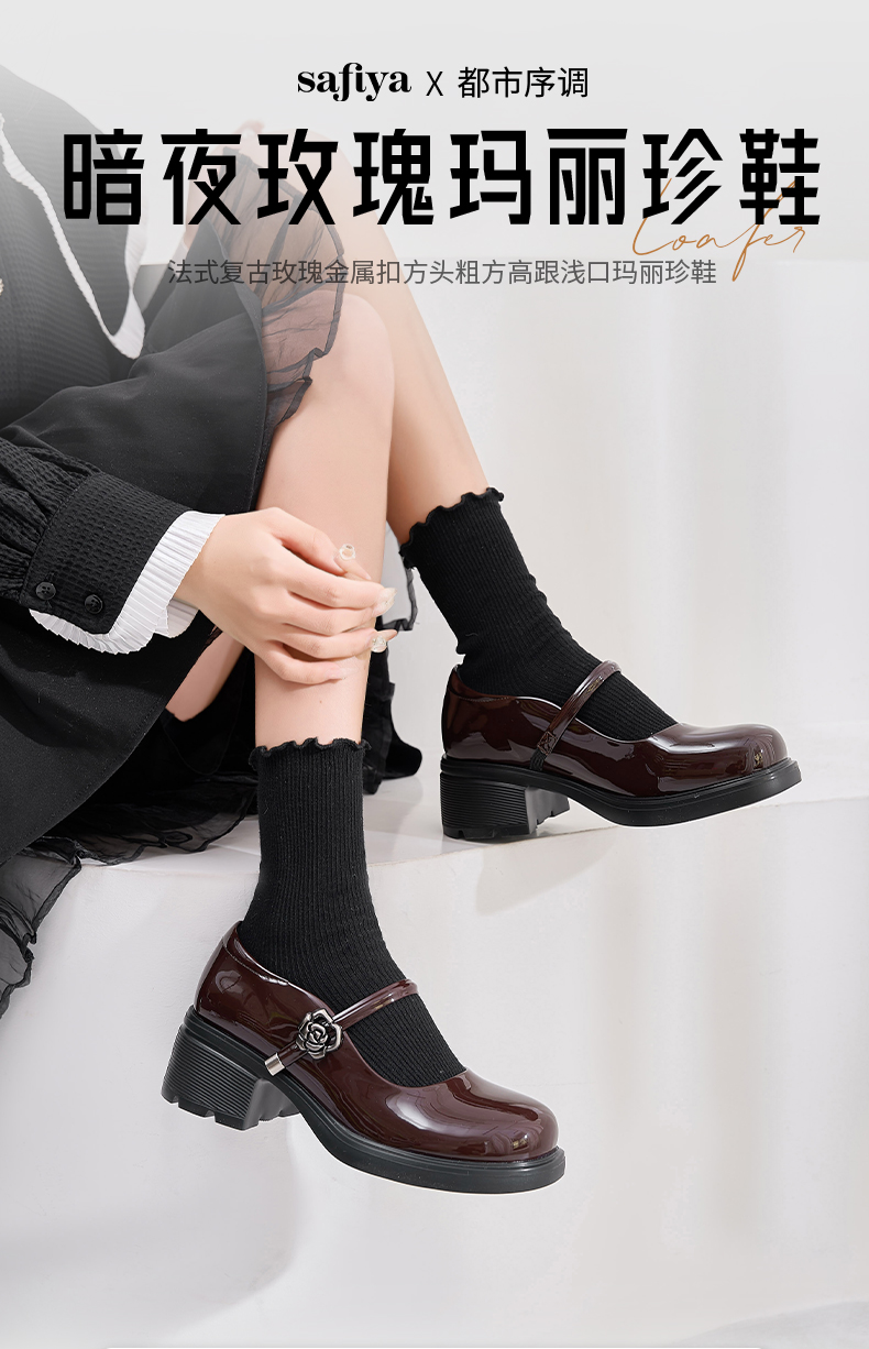 Safiya/索菲娅2025法式复古玫瑰金属扣方头粗方高跟浅口玛丽珍鞋SFD1111246