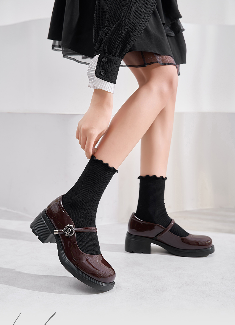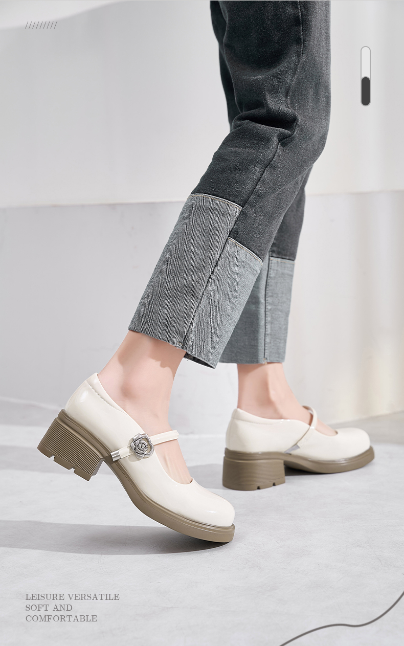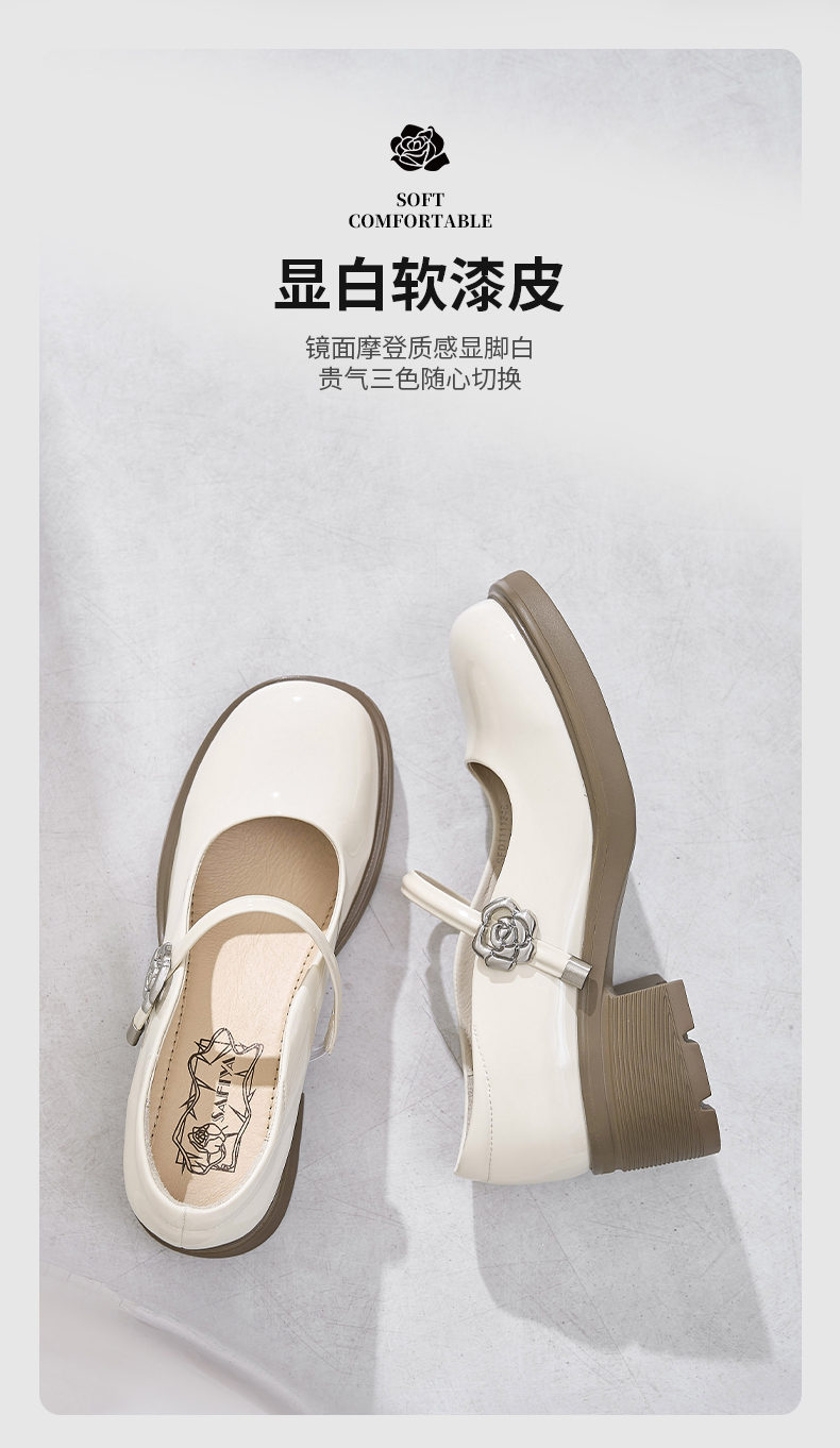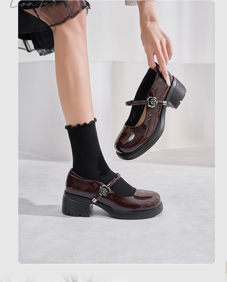 Safiya/索菲娅2025法式复古玫瑰金属扣方头粗方高跟浅口玛丽珍鞋SFD1111246