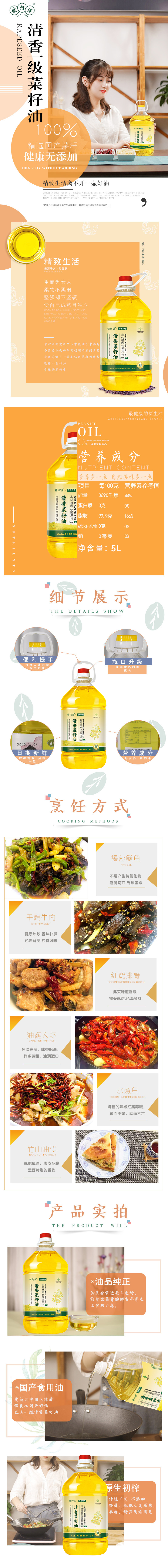 荆选堵河源清香一级菜籽油5L/桶