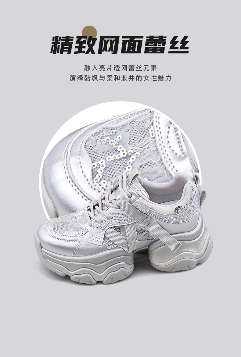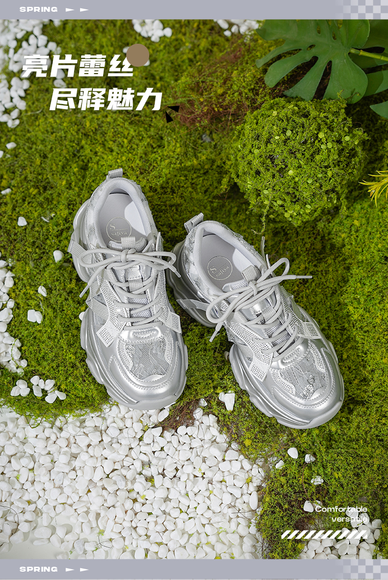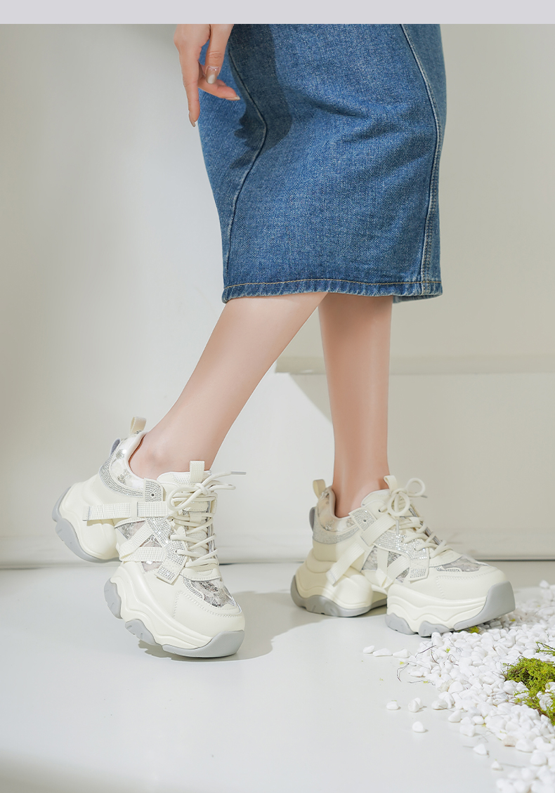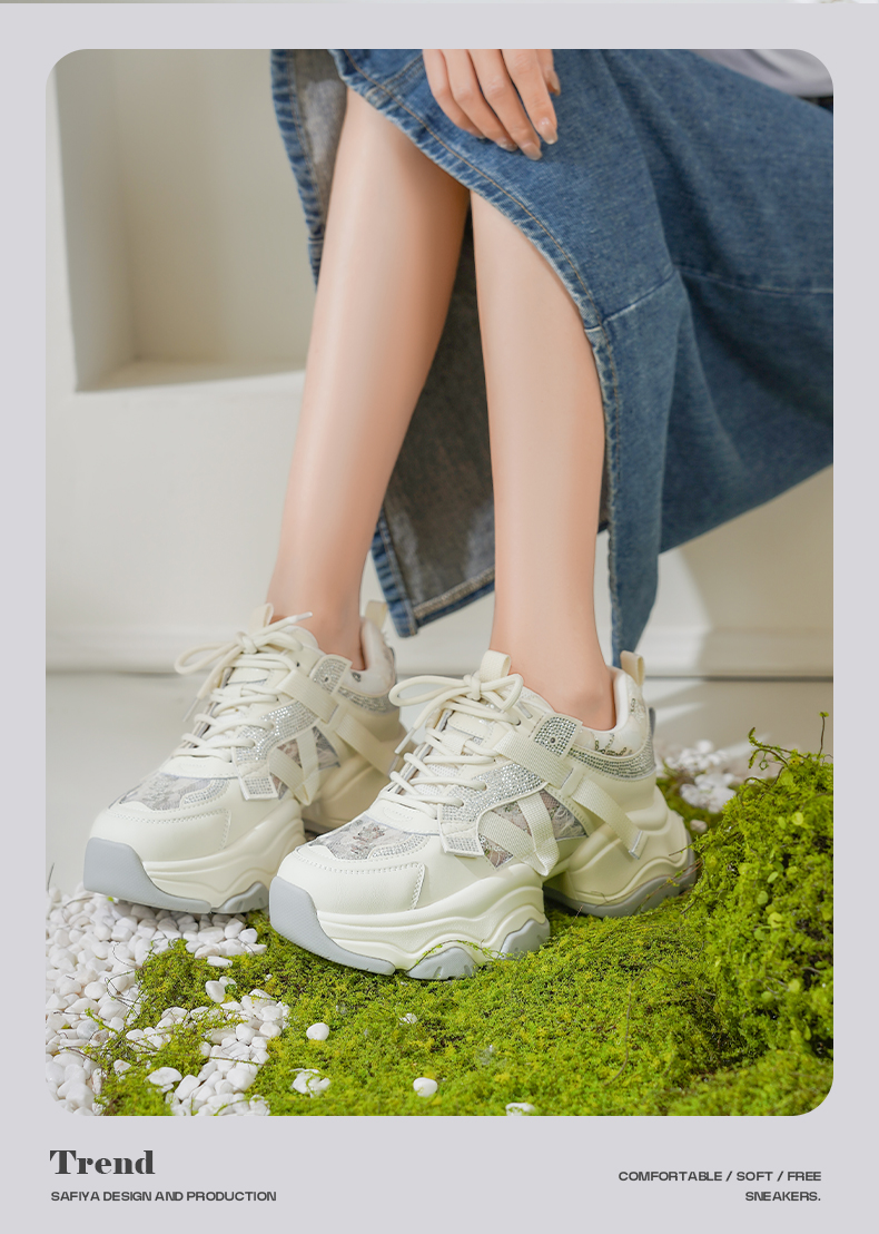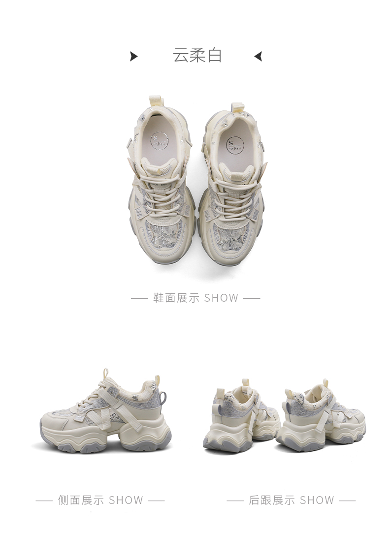 Safiya/索菲娅2025潮流街头透气网面蕾丝烫钻增高运动老爹鞋 SFD1112263