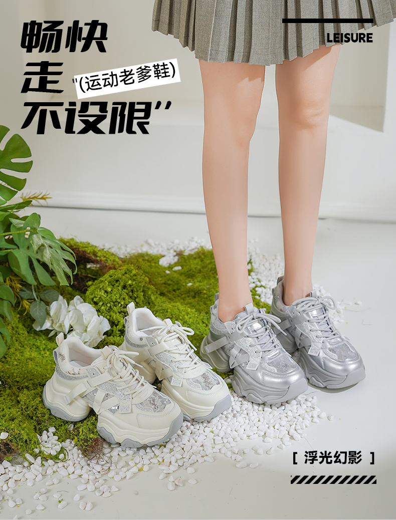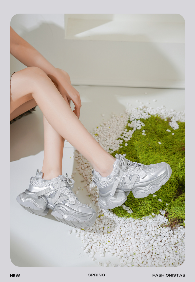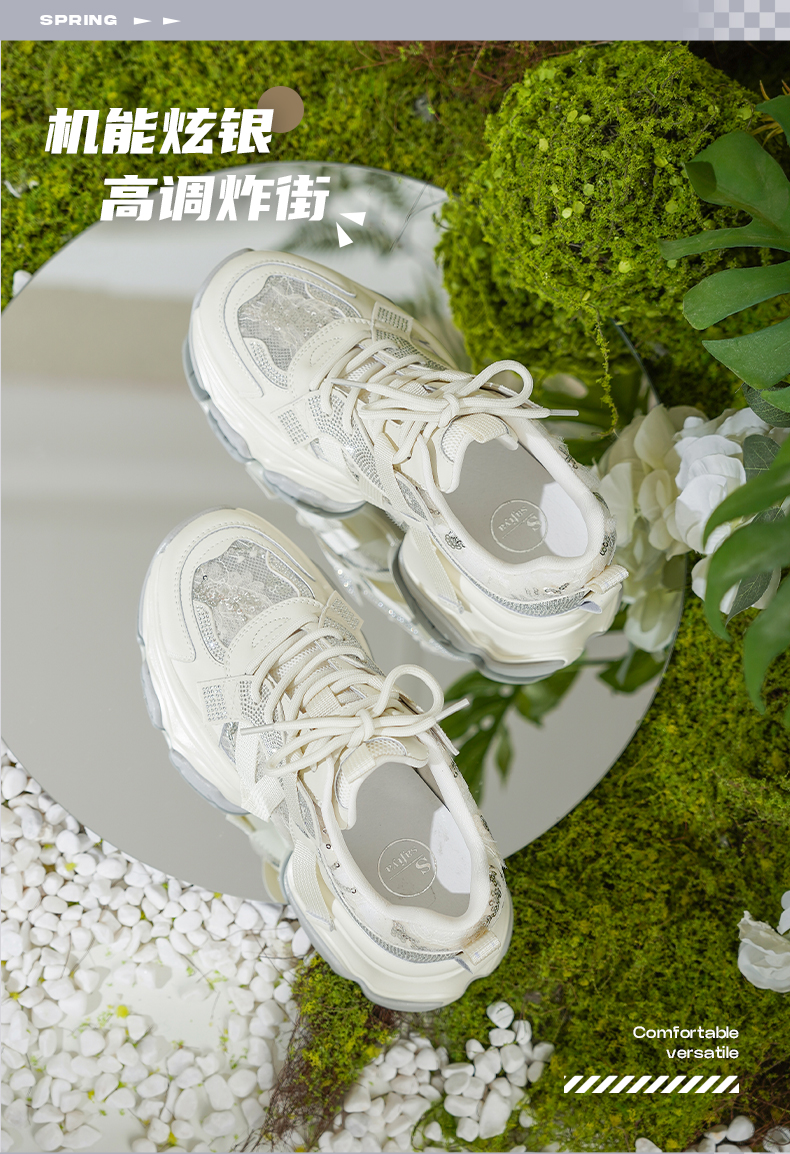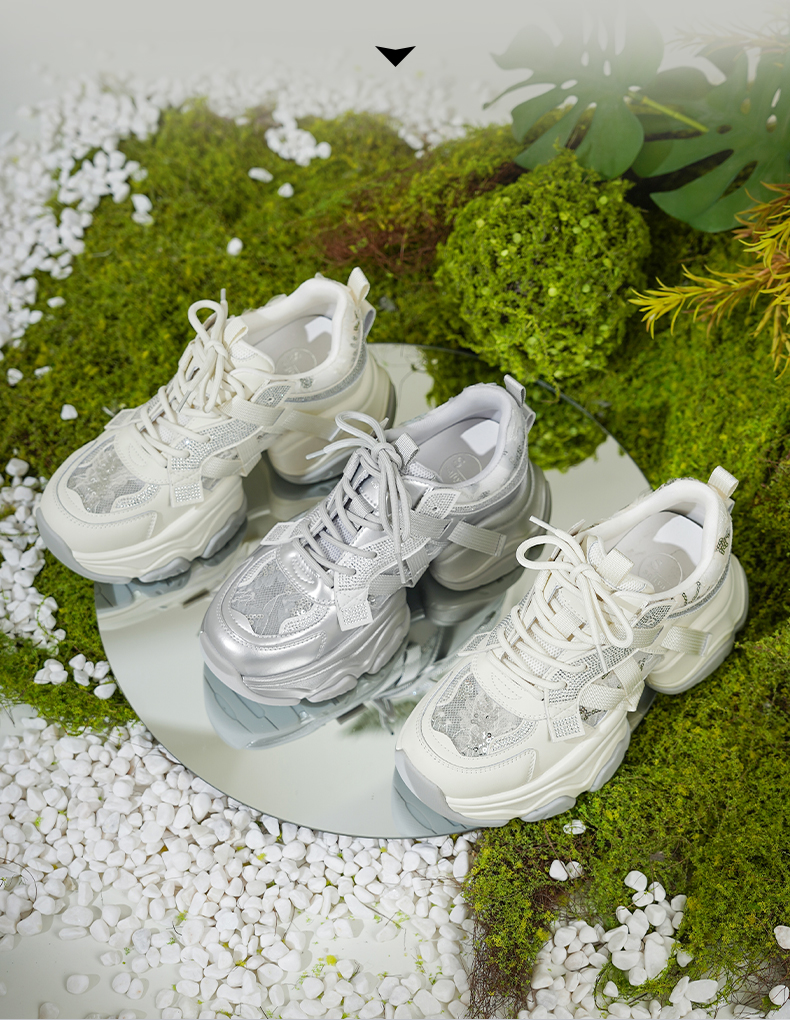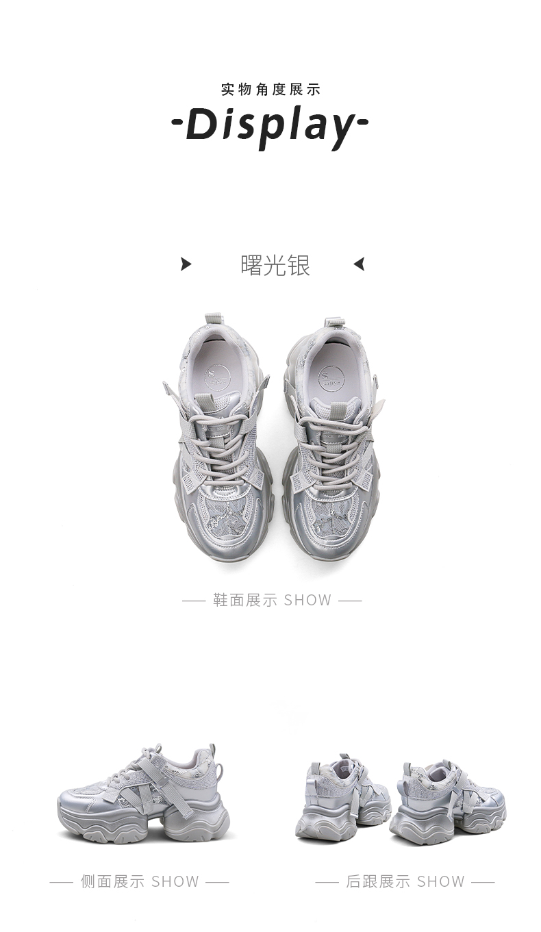 Safiya/索菲娅2025潮流街头透气网面蕾丝烫钻增高运动老爹鞋 SFD1112263