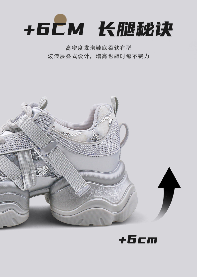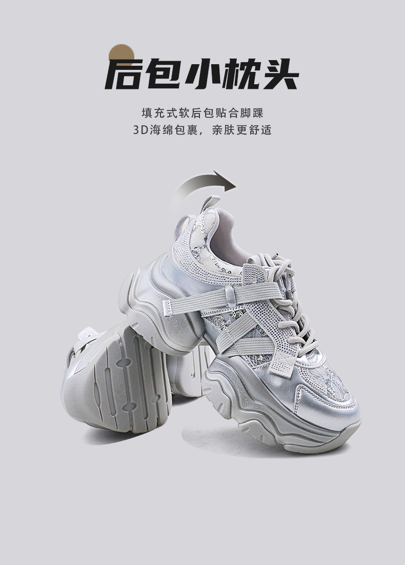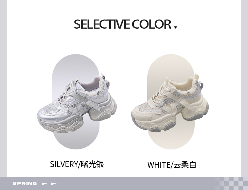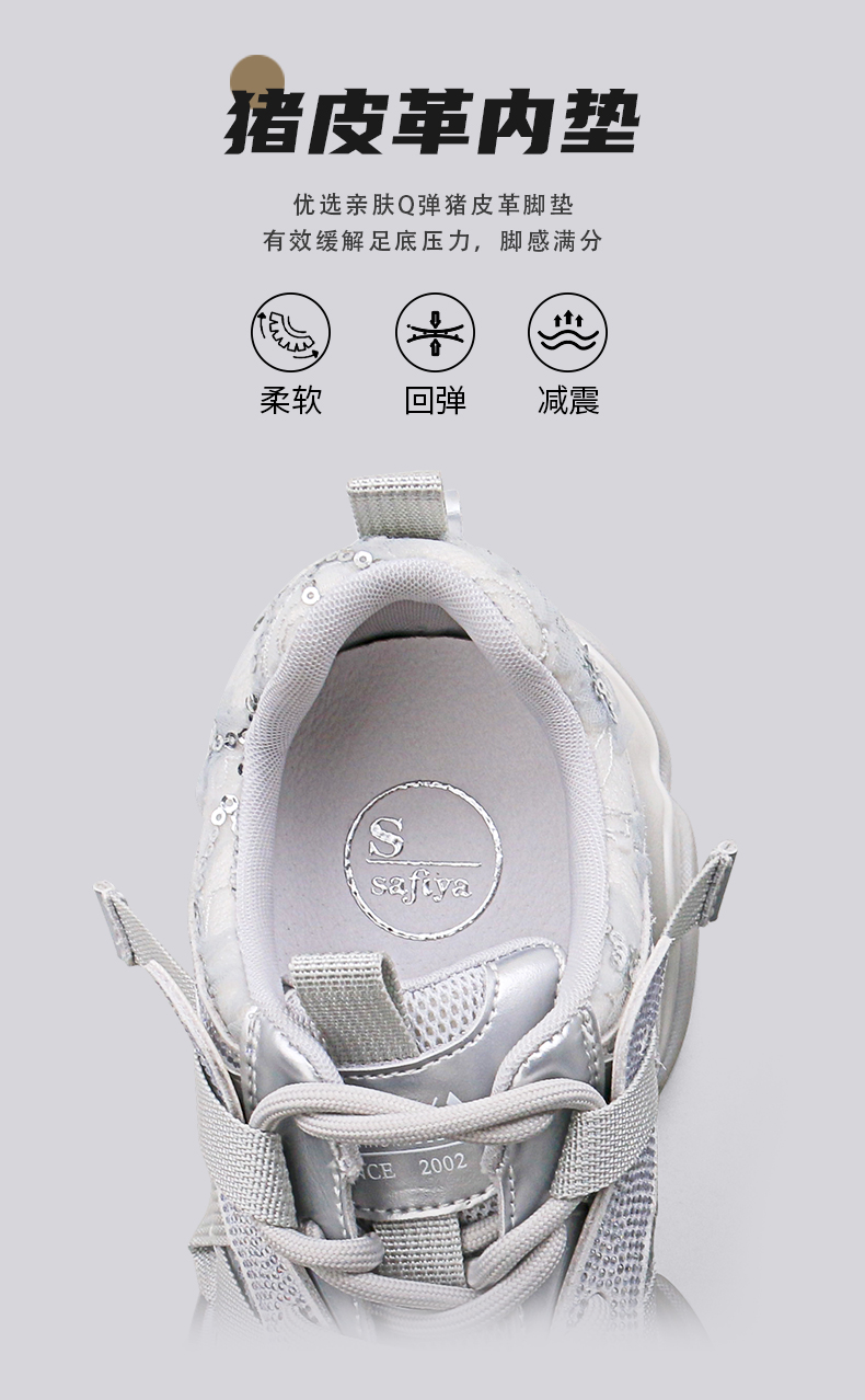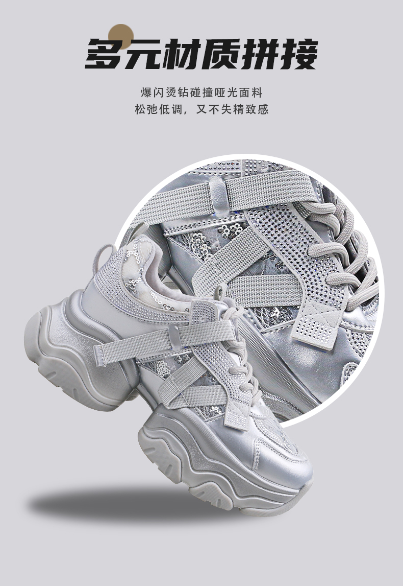Safiya/索菲娅2025潮流街头透气网面蕾丝烫钻增高运动老爹鞋 SFD1112263