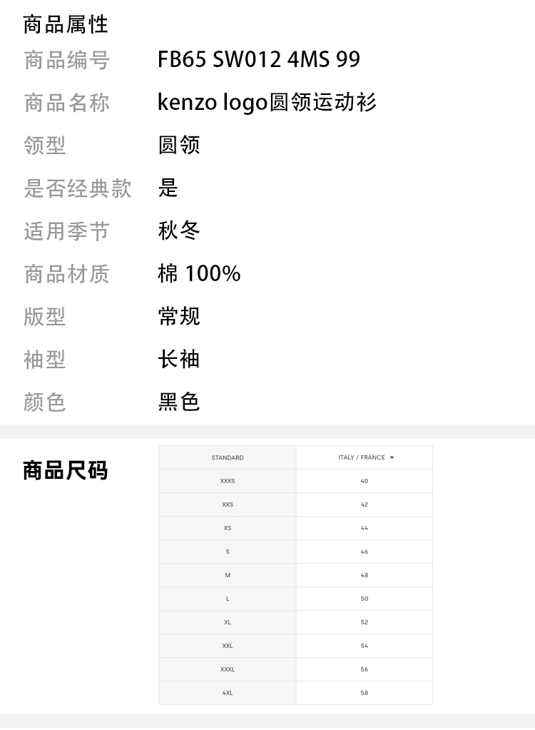 KENZO 高田贤三 箭头标识 男士卫衣 黑色 FB65 SW012 4MS 99
