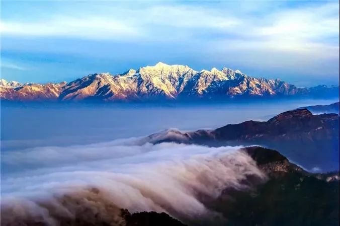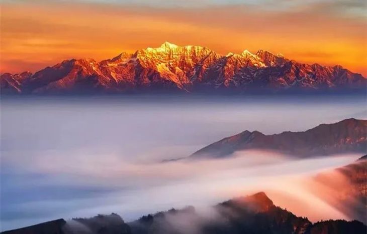 “蜀山之王”贡嘎雪山矗立于牛背山的正西最高点。虽然海拔不算太高,但牛背山的山顶可观云海、日出、夕阳、“佛光”、星轨等自然美景,还能远眺贡嘎、峨眉、瓦屋山、四姑娘山、夹金山等蜀中名山大川,被誉为“亚洲最大360度最美观景平台”,受到全国乃至全世界驴友、摄影爱好者的追捧。