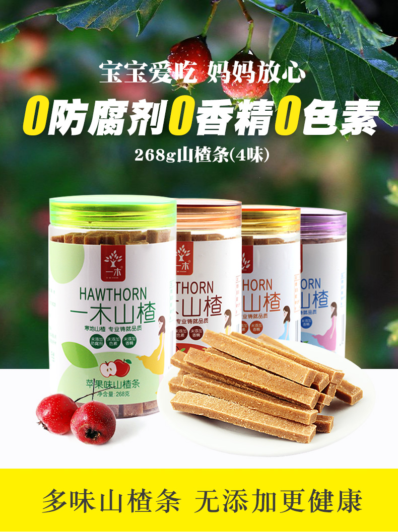 东北寒铁山楂 果味山楂条 268g*1罐 山楂干 蜜饯 儿童 休闲零食 一木 包邮