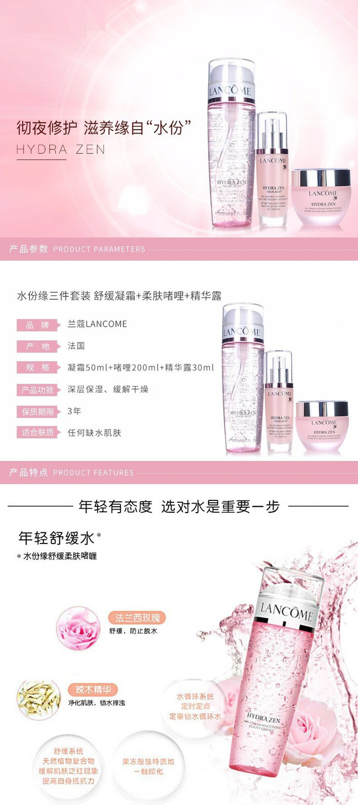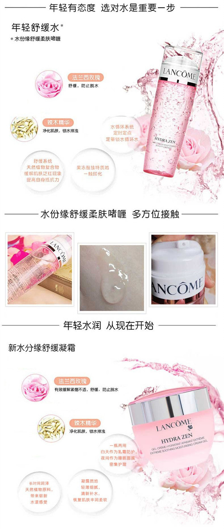 【海关保税直发】Lancome兰蔻水分缘三件套/啫喱凝霜精华--会员5折