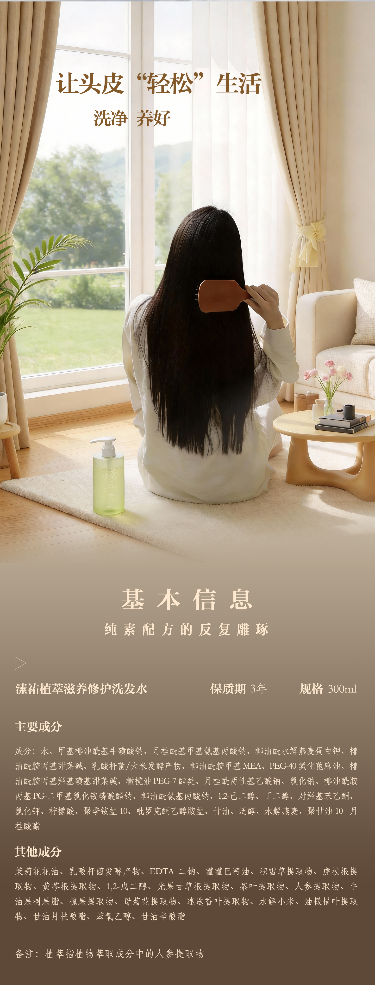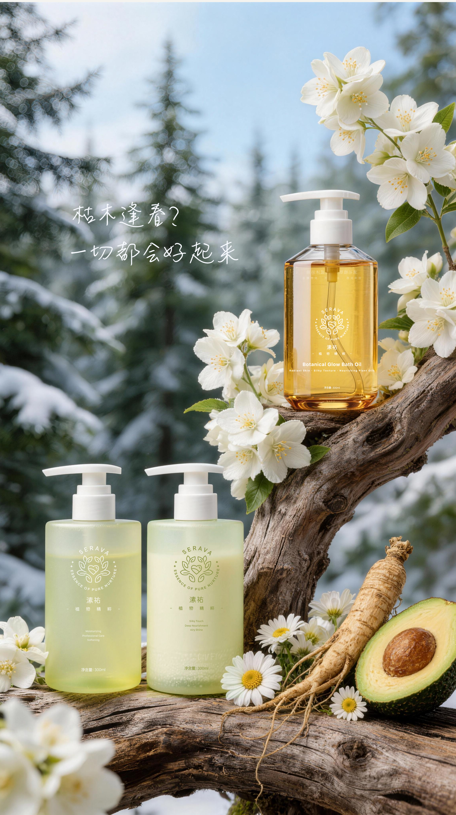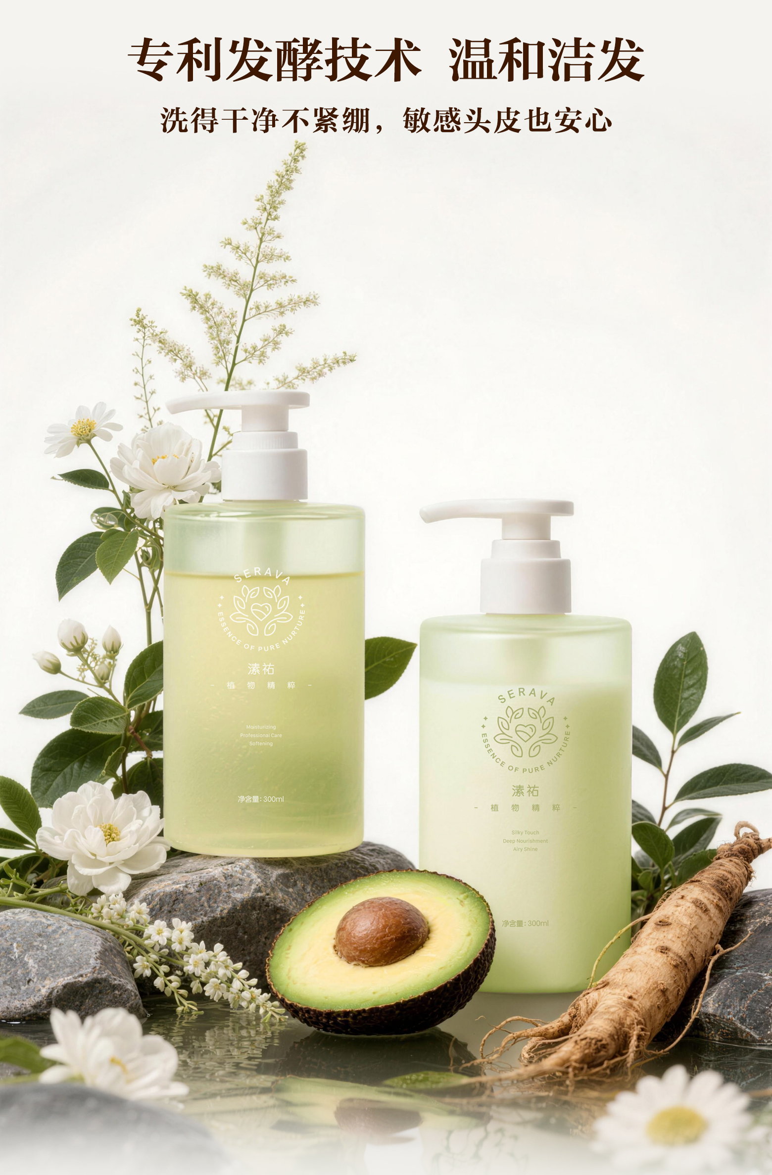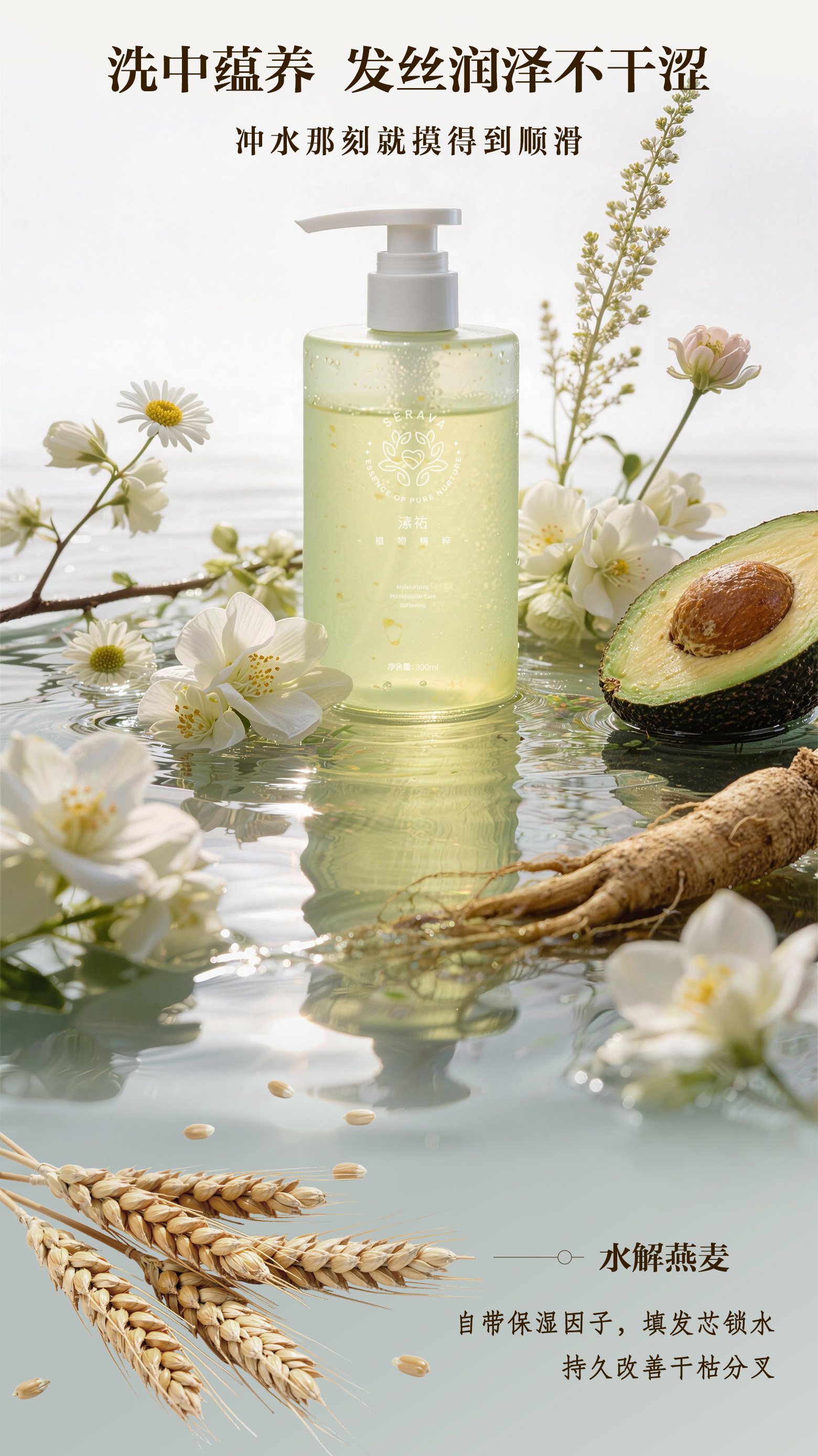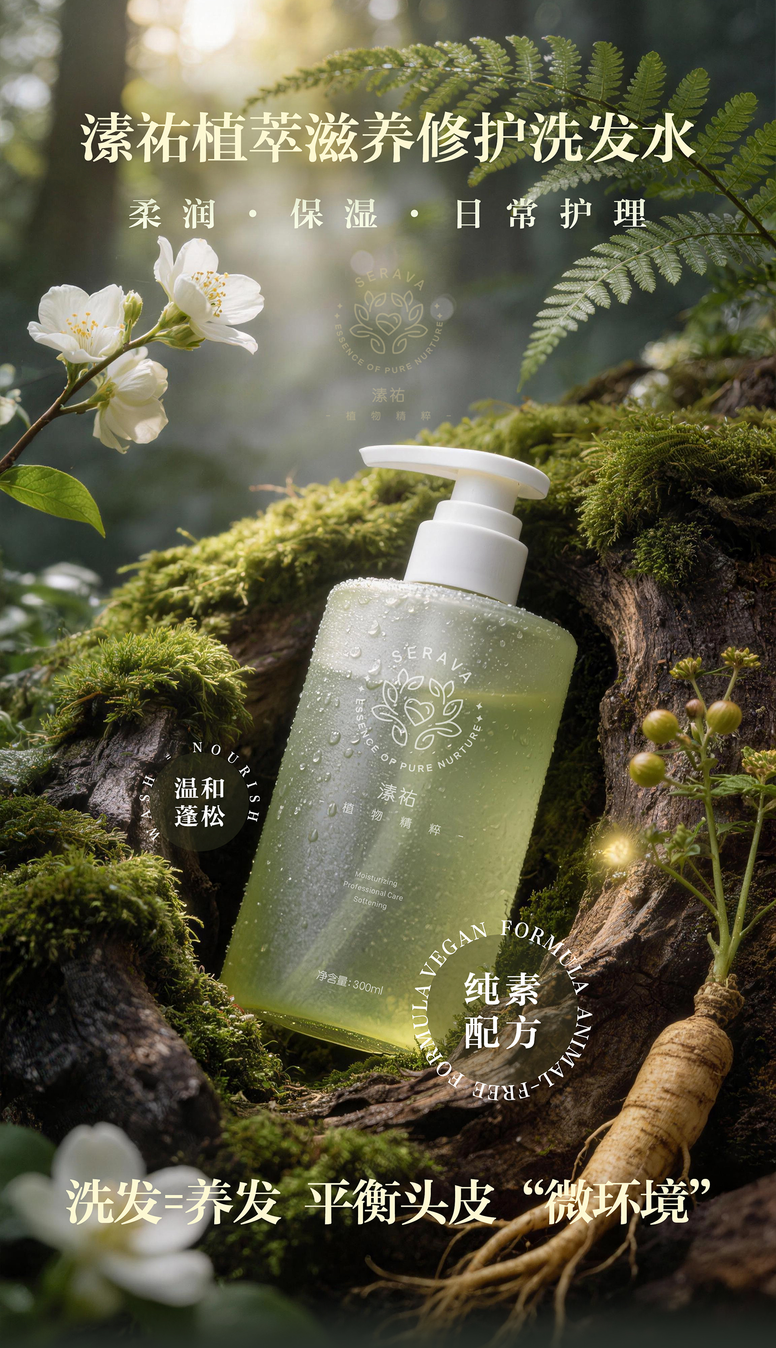 植萃滋养修护洗发水300ml 顺滑柔软有光泽 去屑蓬松缓解头发毛躁 纯素自研专利配方 天然植物矿物来源 Serava溸祐纯素洗护
