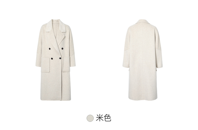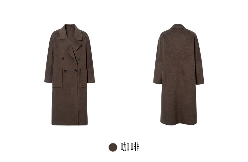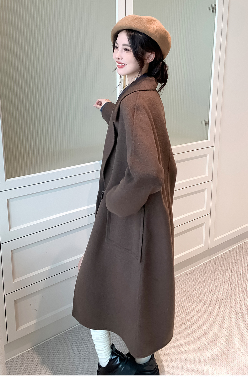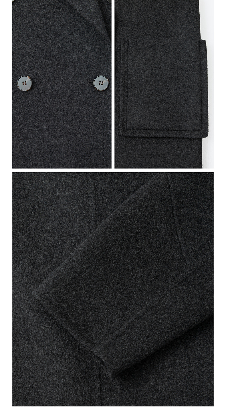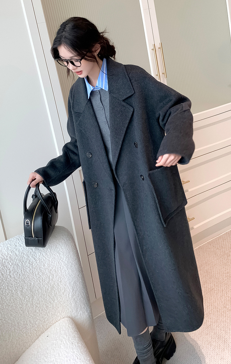 【严选】诗凡黎灰色绵羊毛翻领毛呢外套2024冬新款优雅双面呢高级长款大衣SF7170111D