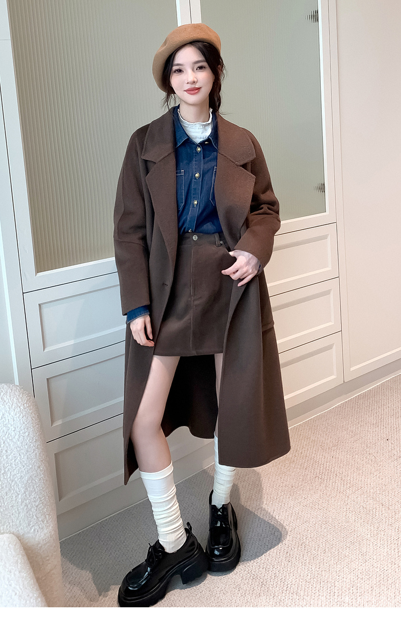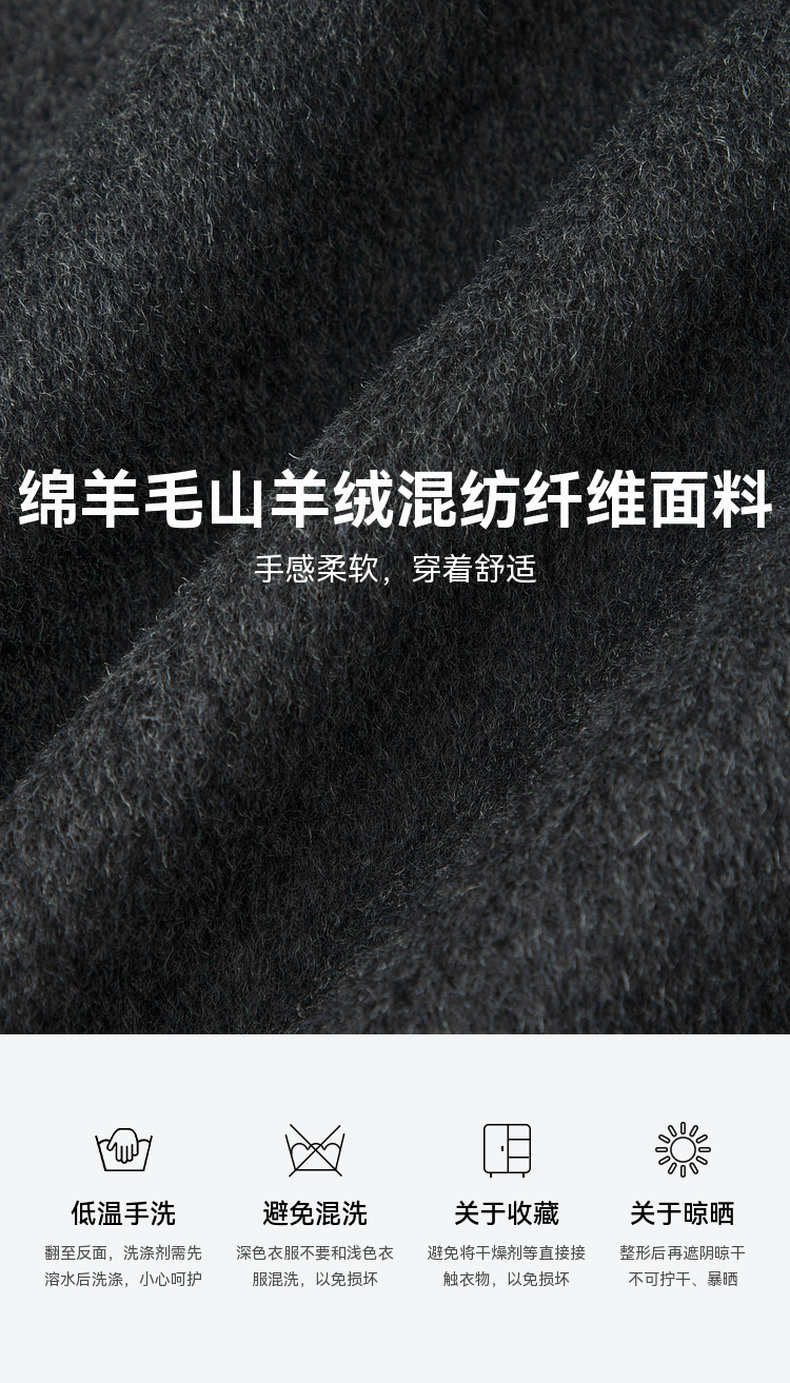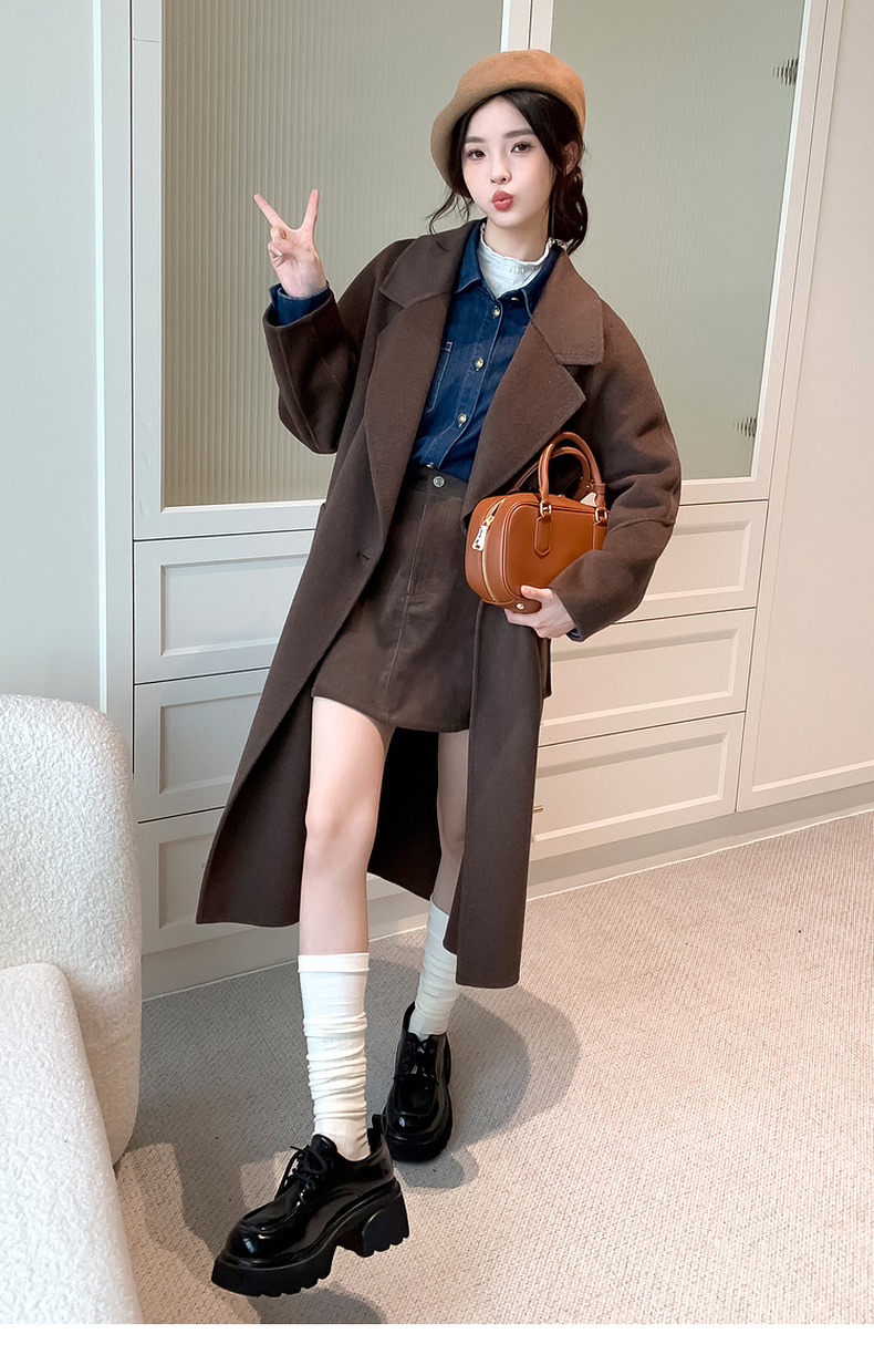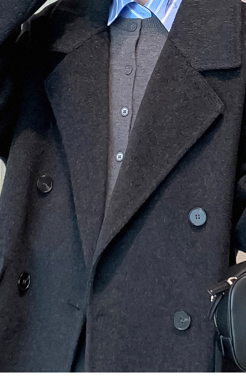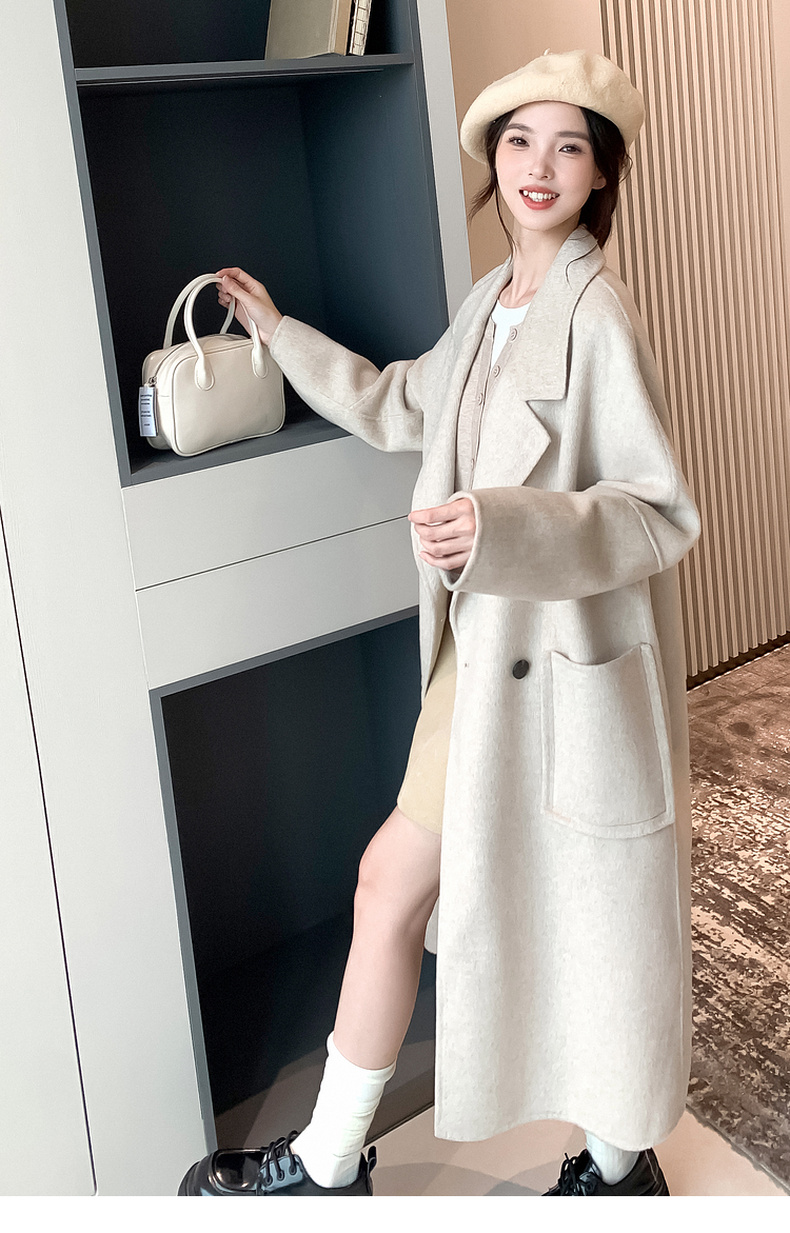 【严选】诗凡黎灰色绵羊毛翻领毛呢外套2024冬新款优雅双面呢高级长款大衣SF7170111D