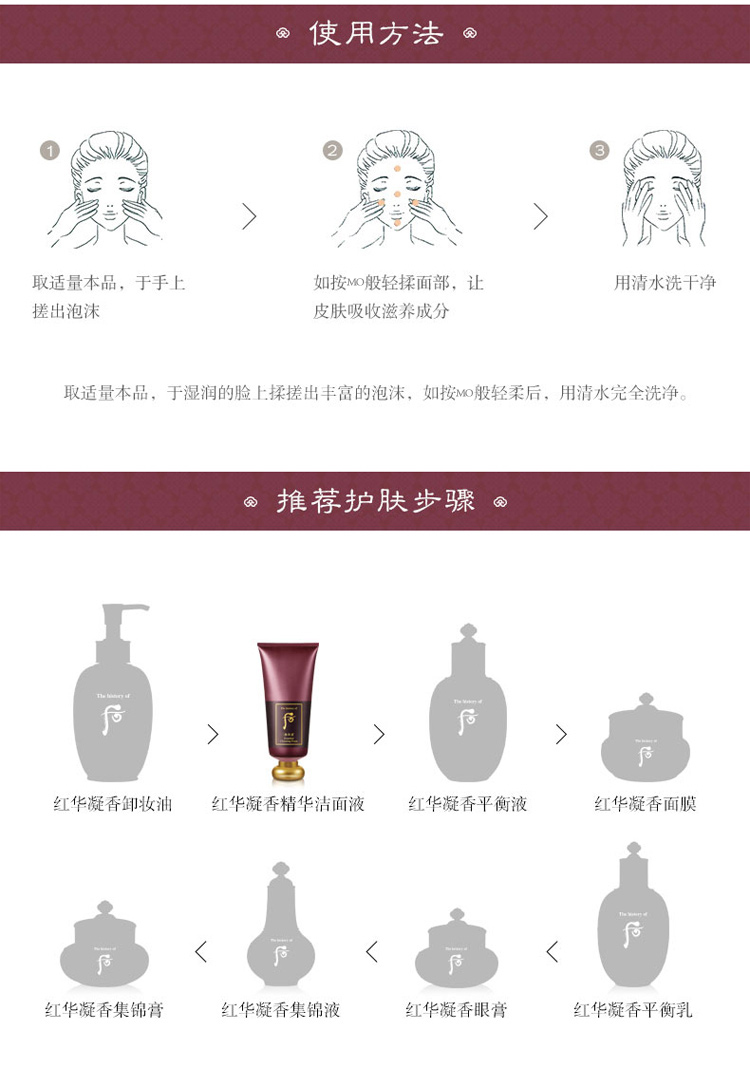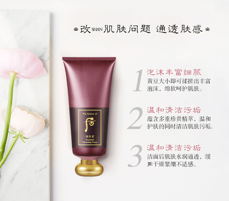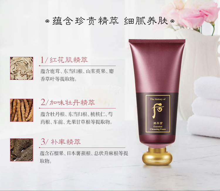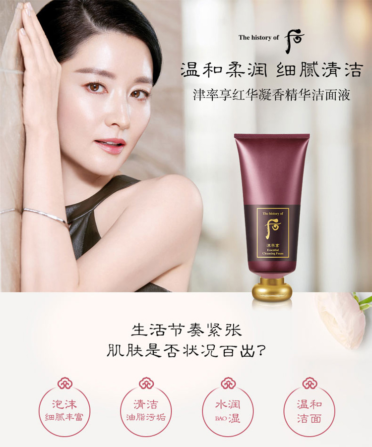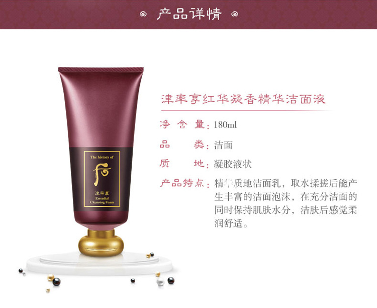 后津率享红华凝香精华洁面液 180ml 温和营养保湿清洁紧致