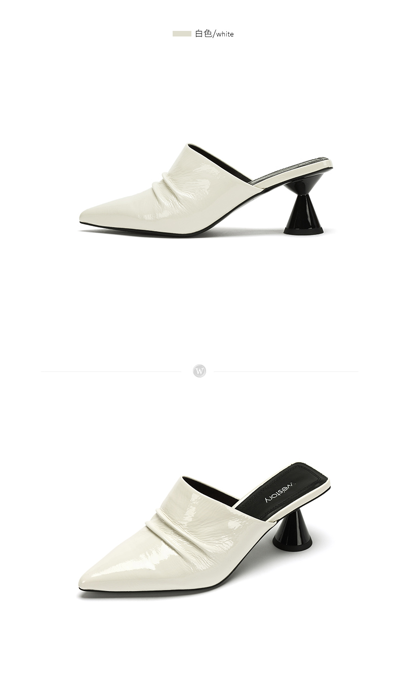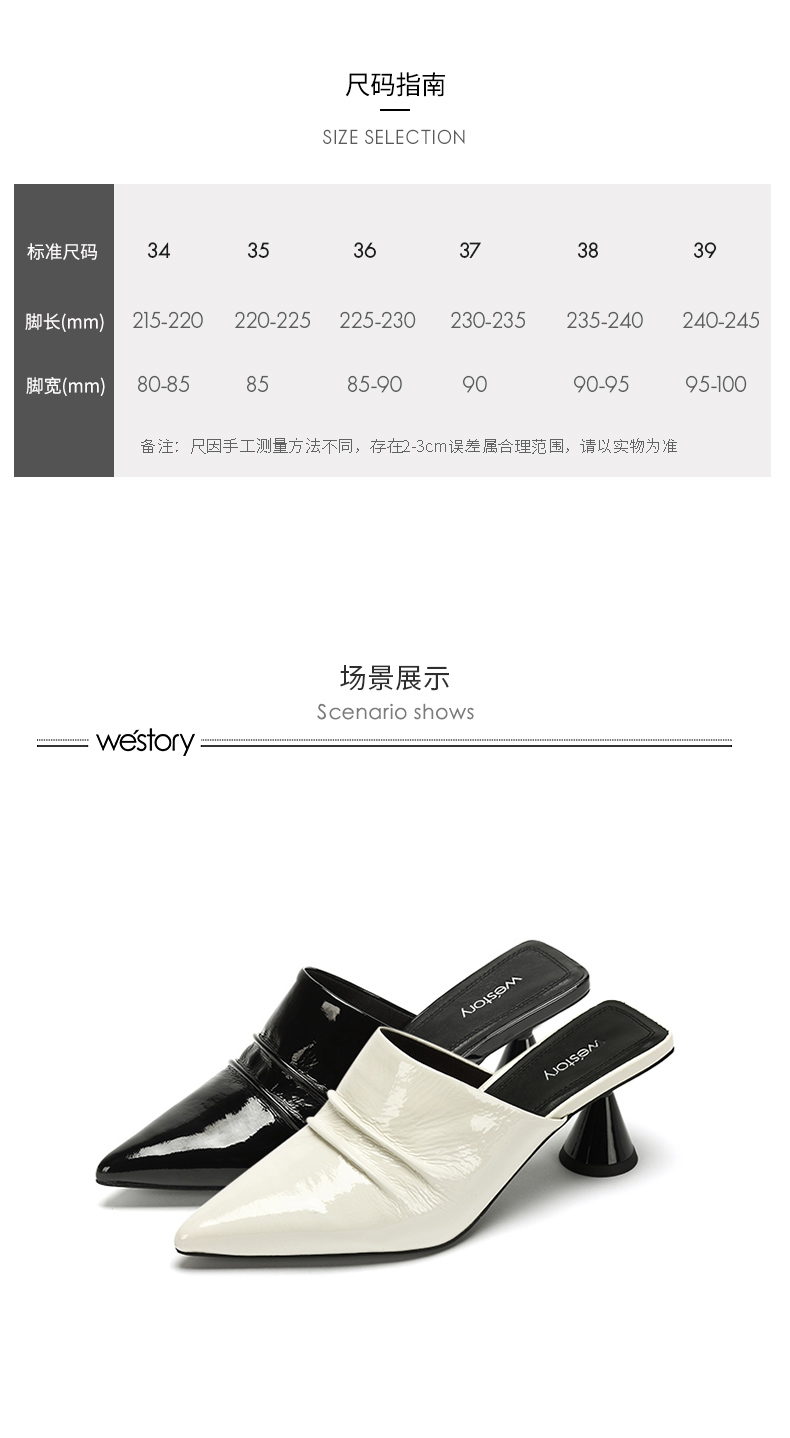 westory春夏新款拖鞋女尖头穆勒鞋潮流中跟鞋子女W281J50781