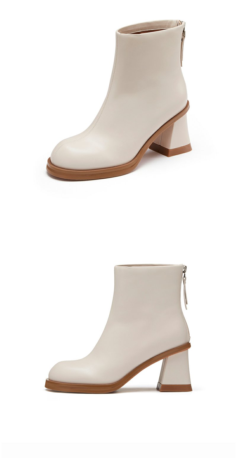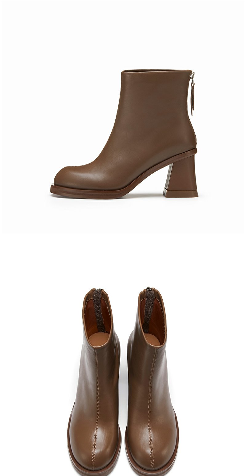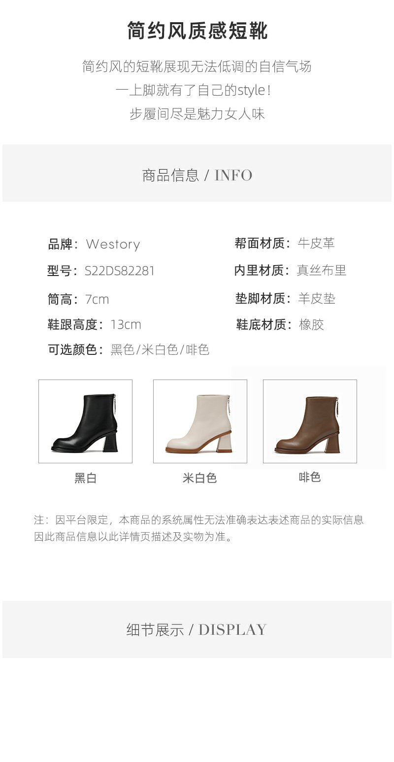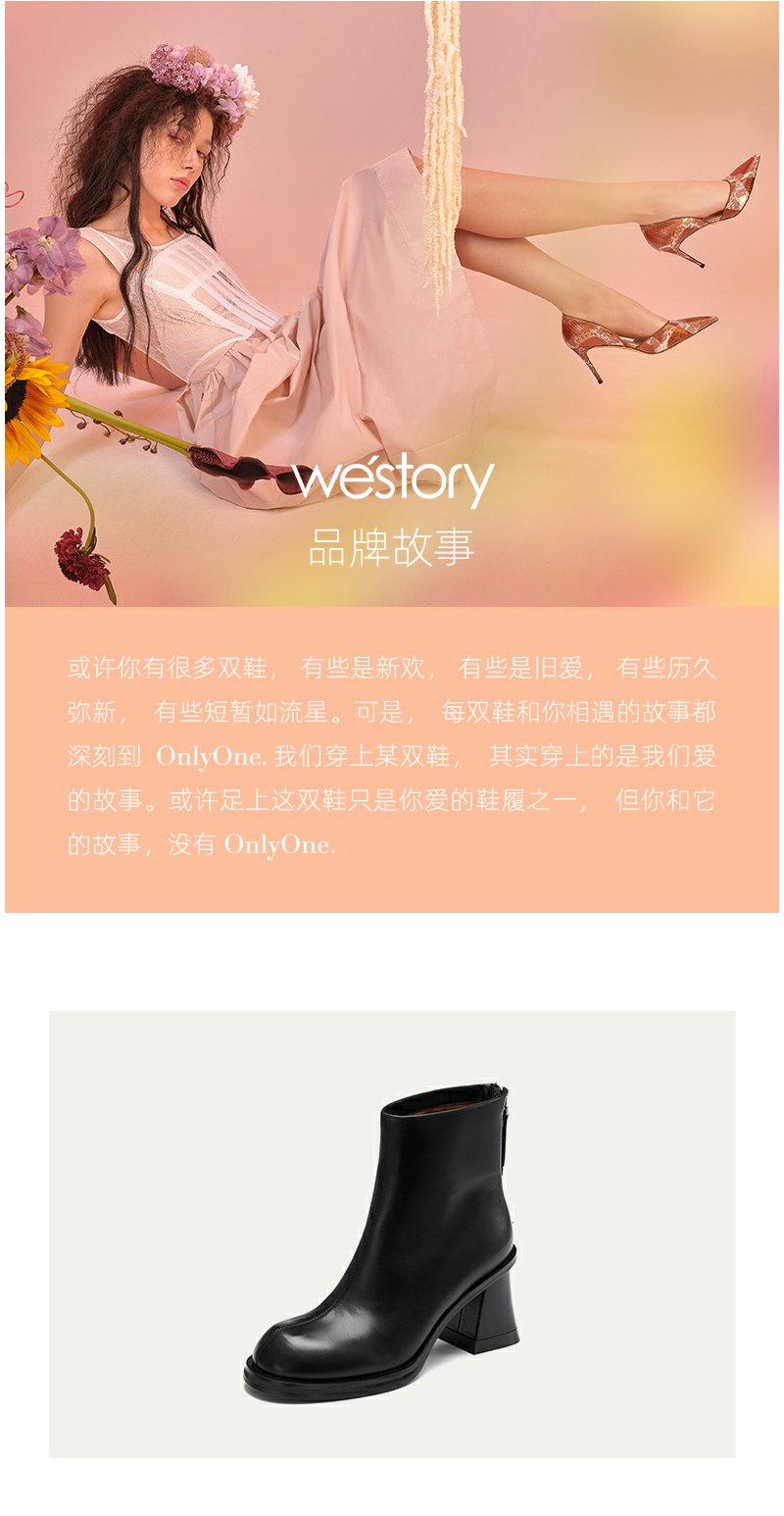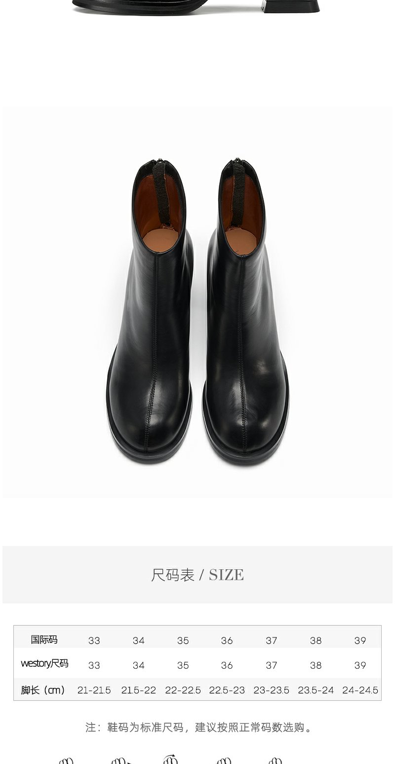 westory粗高跟时装短靴真皮拉链显瘦增高靴子22年秋冬新款女82281