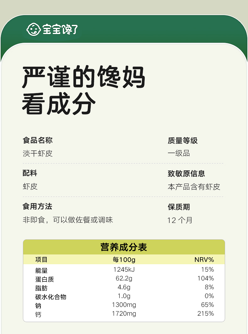 【宝宝馋了】 淡干虾皮 1罐/2罐/3罐/4罐装 钙含量是牛奶的8倍