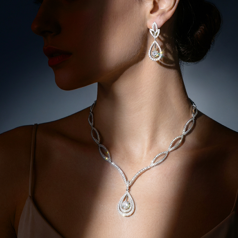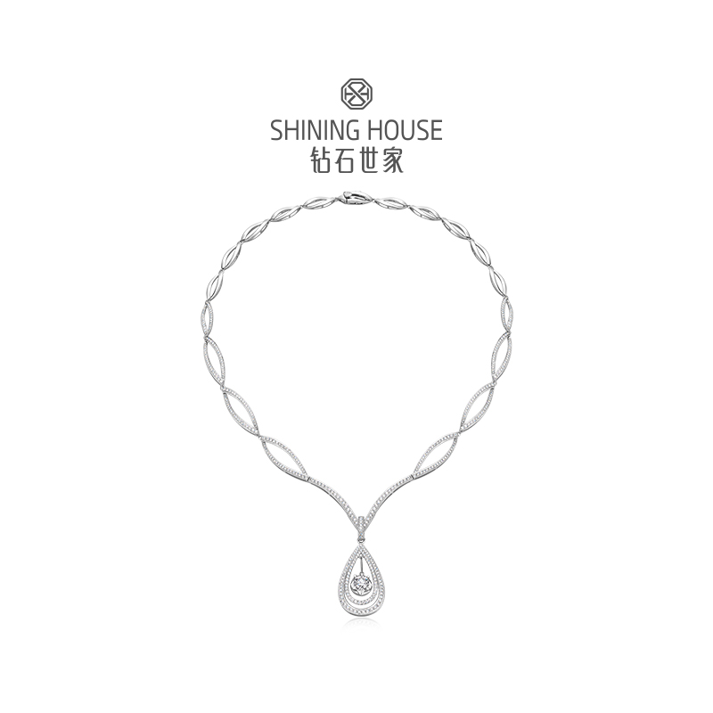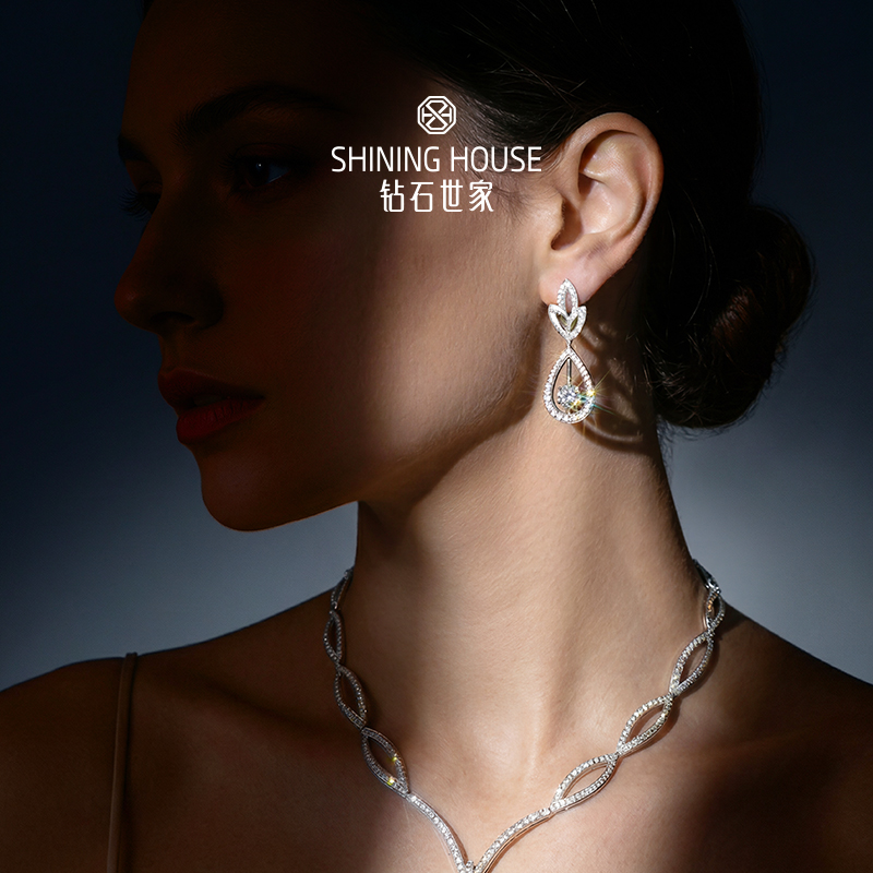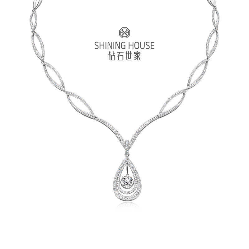 幻美佳人系列[天然] 钻石世家 18k金钻石项链 18K金钻石耳饰 天然真钻K金项链K金耳饰婚嫁结婚订婚耀目群镶18K金天然真钻钻石项链钻石耳饰(预计3天发货)