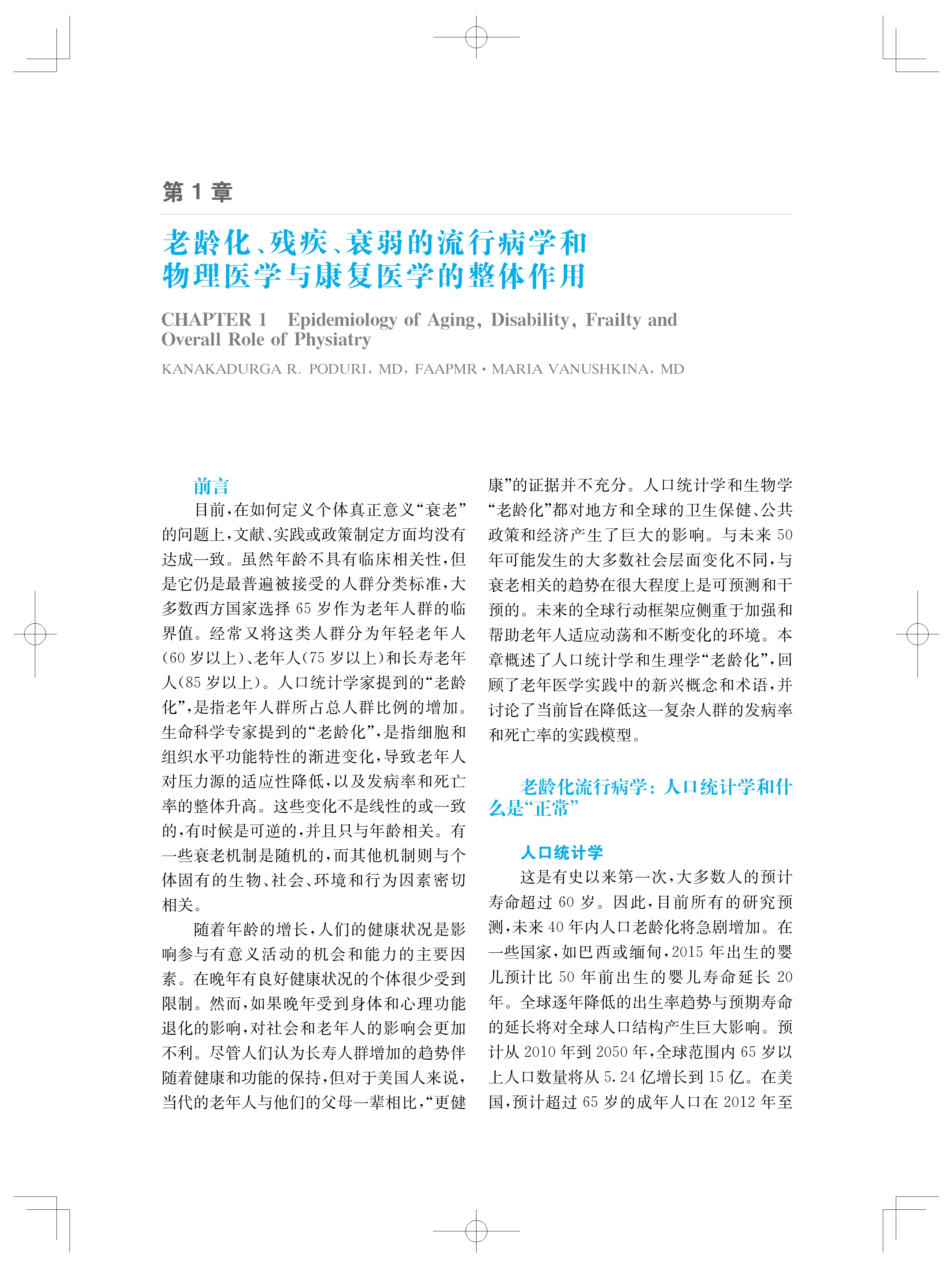 第1章老龄化、残疾、衰弱的流行病学和物理医学与康复医学的整体作用