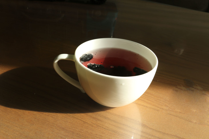 这种桑葚干,可以加八十度左右的热水,制成一杯桑葚茶。