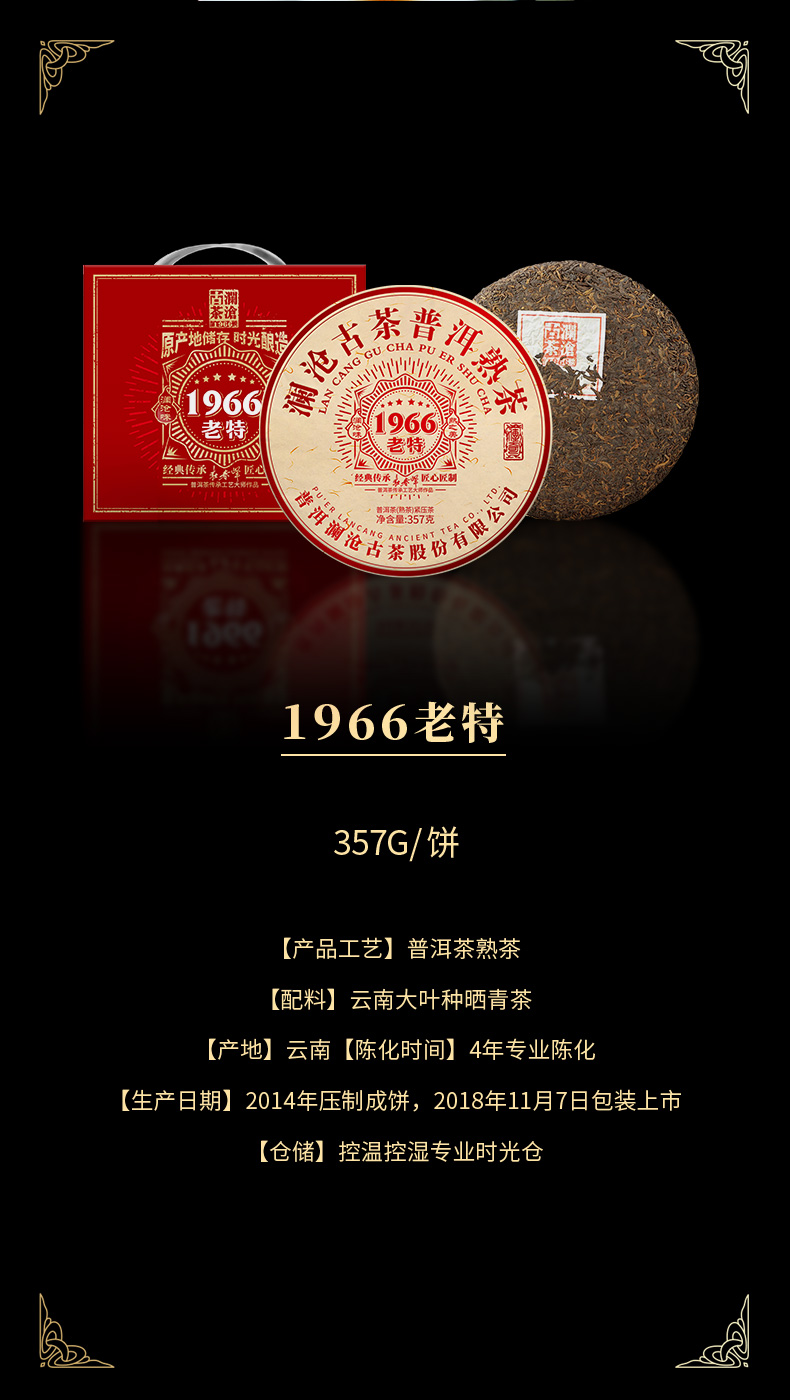 【茶礼】澜沧古茶2018年1966老特饼熟茶古树普洱茶时光仓老茶 配金葫芦公版礼盒