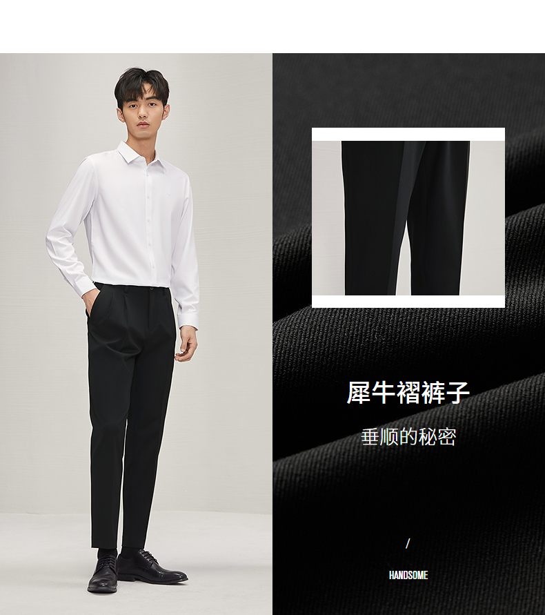 【犀牛褶】柒牌西裤男正装2025秋季新款商务通勤上班双褶直筒长裤127H71670