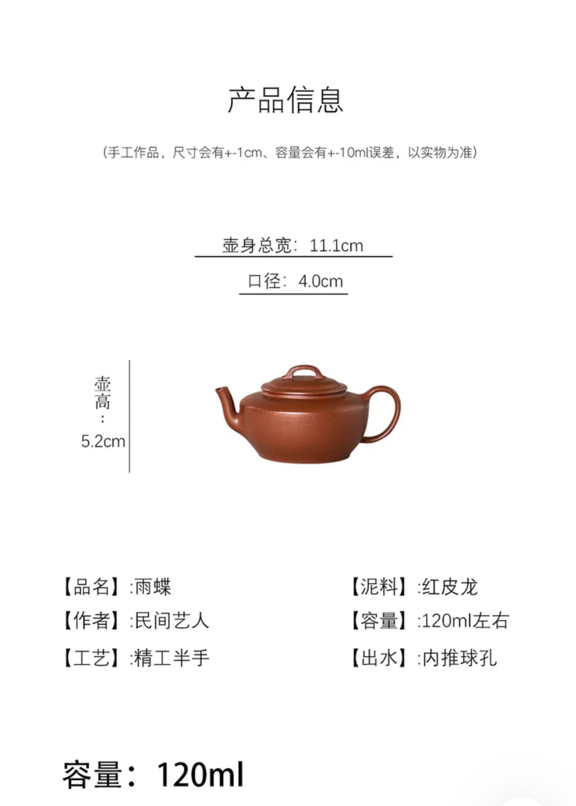 雨蝶 | 原矿红皮龙 紫砂壶 120ml 精工小品