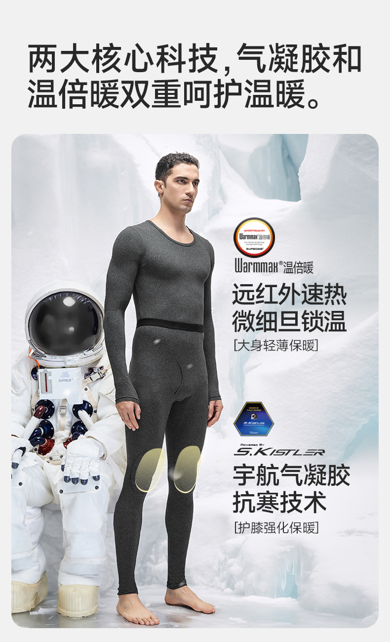 素湃气凝胶护膝保暖内衣套装加绒加厚冬季5A抗菌自发热秋衣秋裤