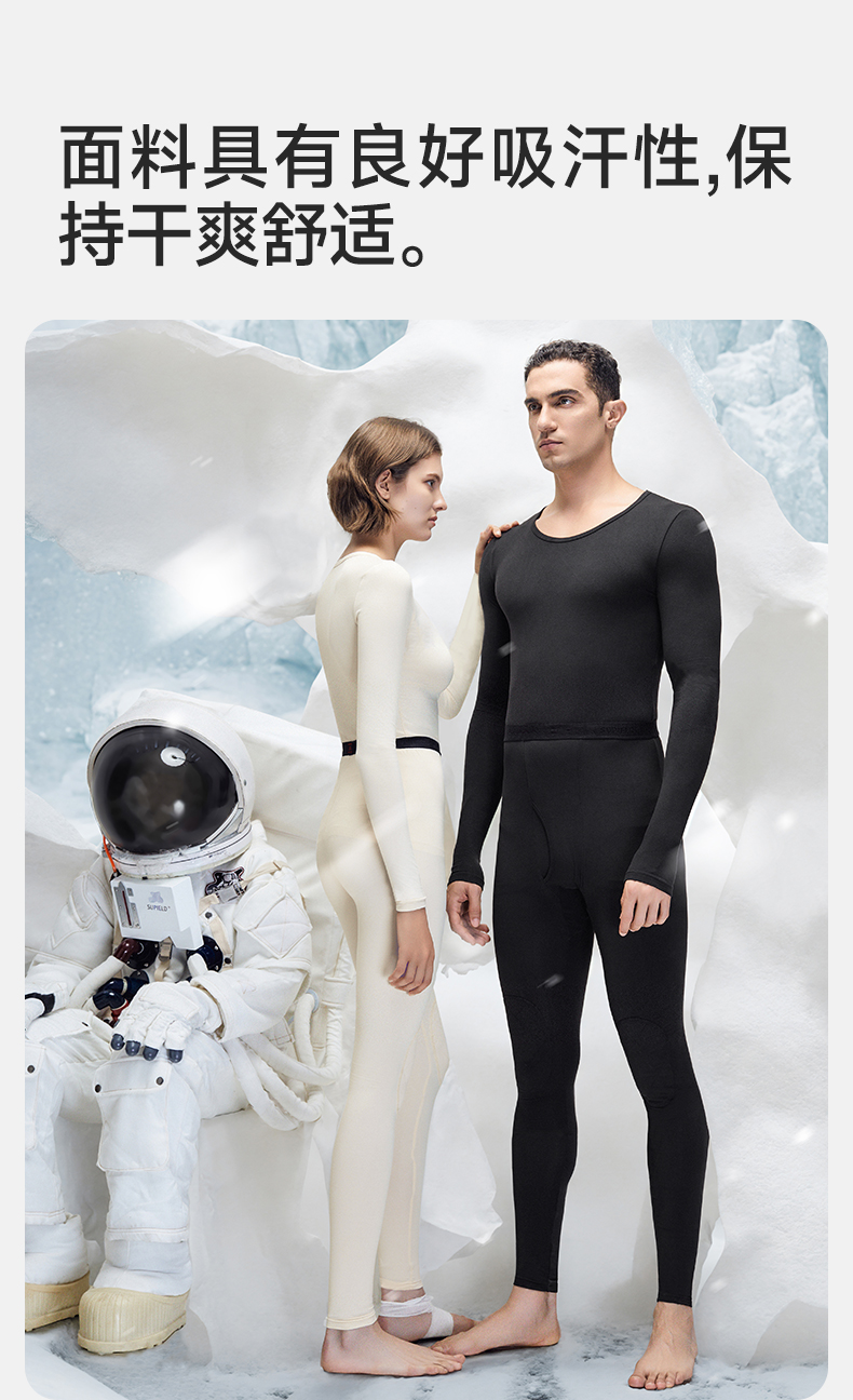 Supield素湃保暖301内衣圆领男轻薄款吸湿排汗秋衣秋裤情侣套装女